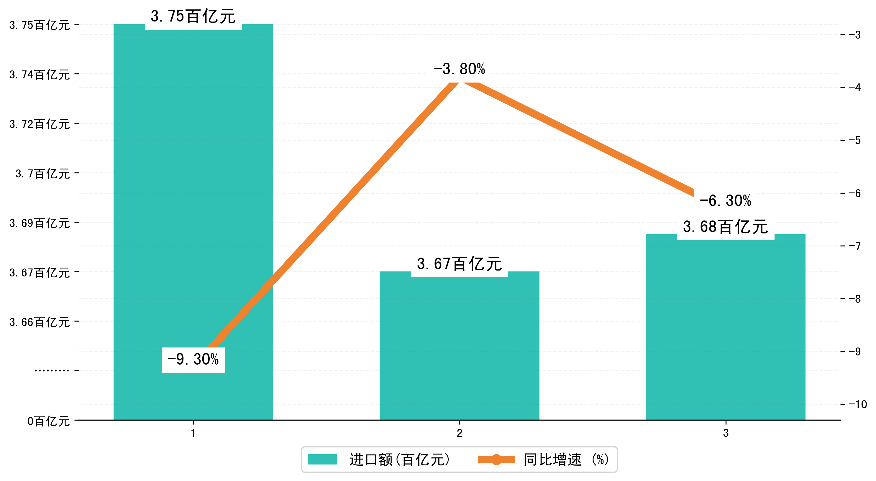 以人民币计,2025年1-3月宁波市进口额为1110,4914.4433万元,相比上年同期减少了75,4613.1766万元,同比减少了-6.30%。