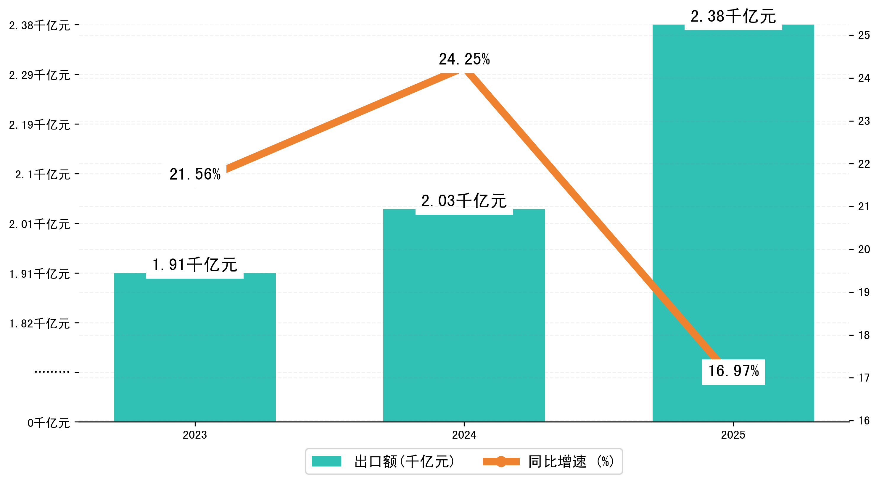 以人民币计,2025年1-3月宁波市出口额为2378,0258.788万元,相比上年同期增加了345,0592.6432万元,同比增加了17.00%。