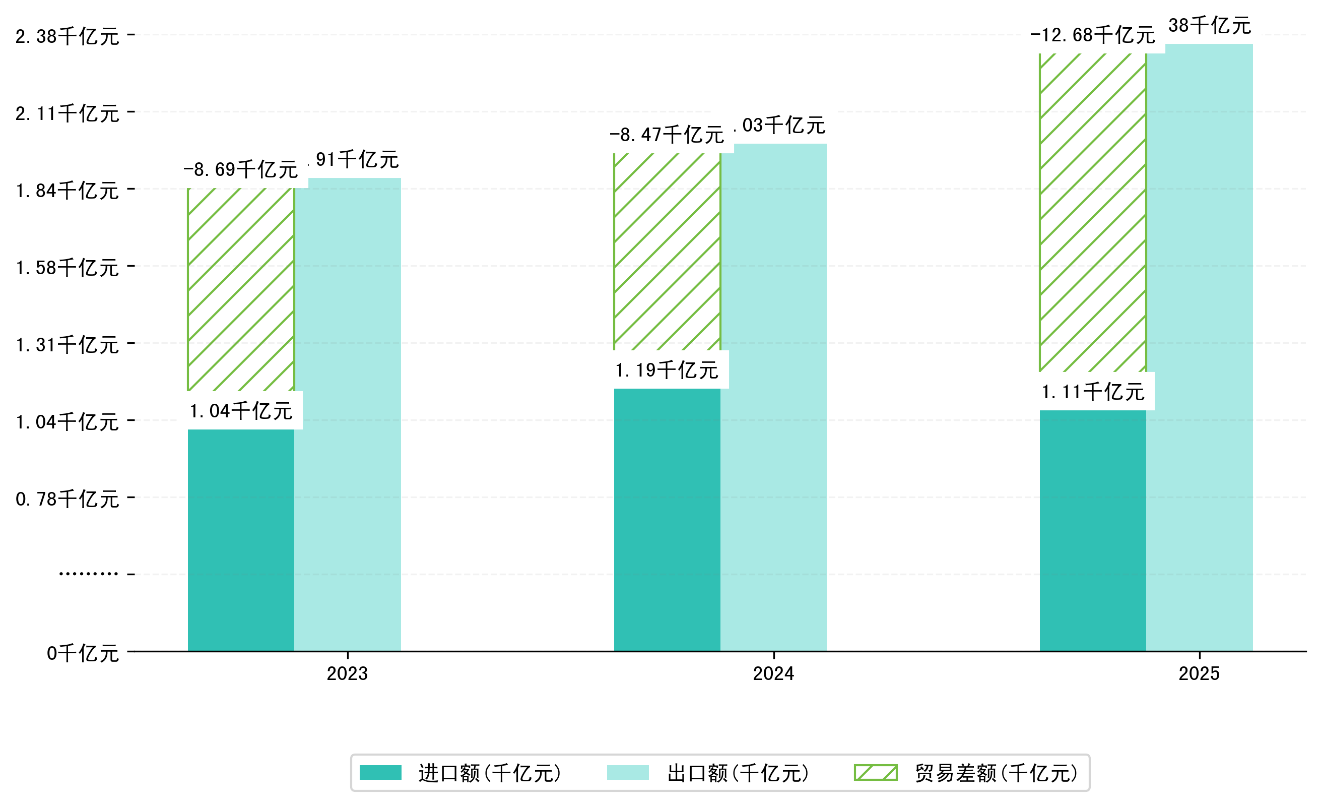 以人民币计,2025年1-3月宁波市贸易差额为1267,5344,3447万元(贸易顺差),相比上年同期增加了420,5205,8198万元,同比增加49.65%。