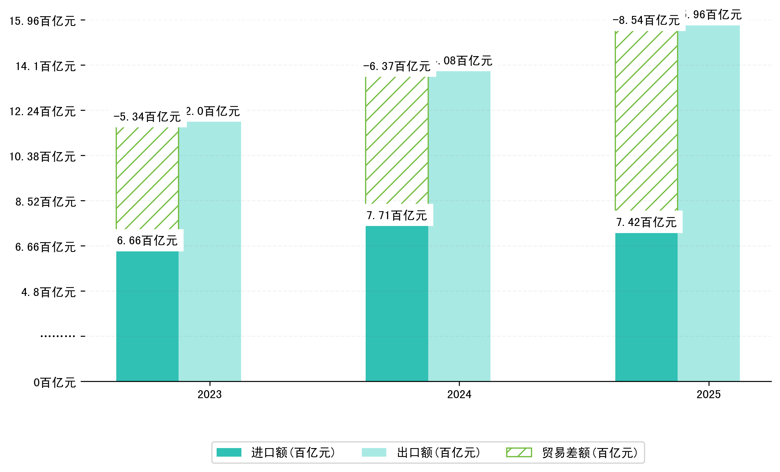 以美元计,2025年1-2月宁波市贸易差额为118,7689,0447万美元(贸易顺差),相比上年同期增加了29,2280,6482万美元,同比增加32.64%。