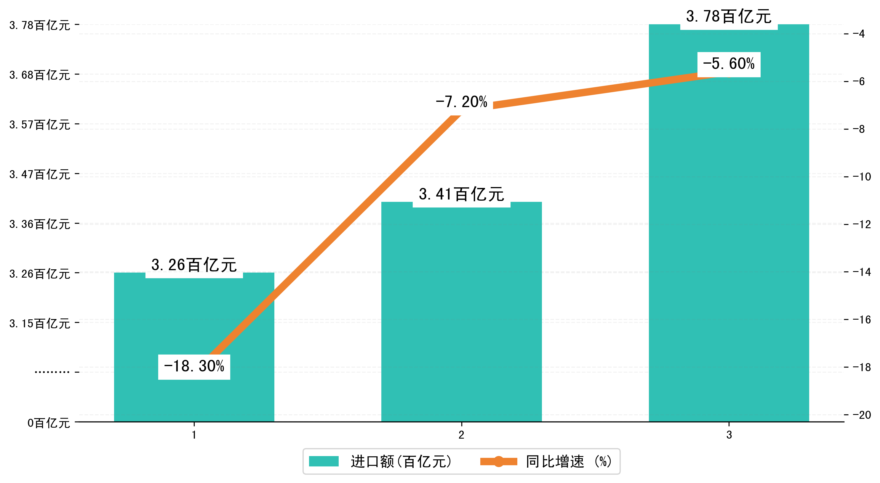 以人民币计,2023年3月宁波市进口额为378,2796.2505万元,相比上月增加了37,6704.0849万元;相比上年同期减少了6,1154.458万元,同比减少了-5.60%。