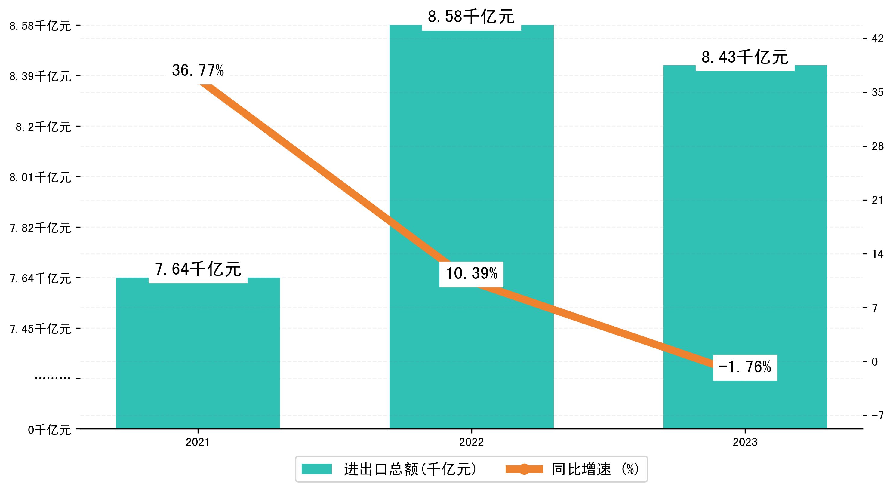 以人民币计,2023年1-8月宁波市进出口总额为8428,9995.067万元,相比上年同期减少了151,1705.1338万元,同比减少了-1.60%。