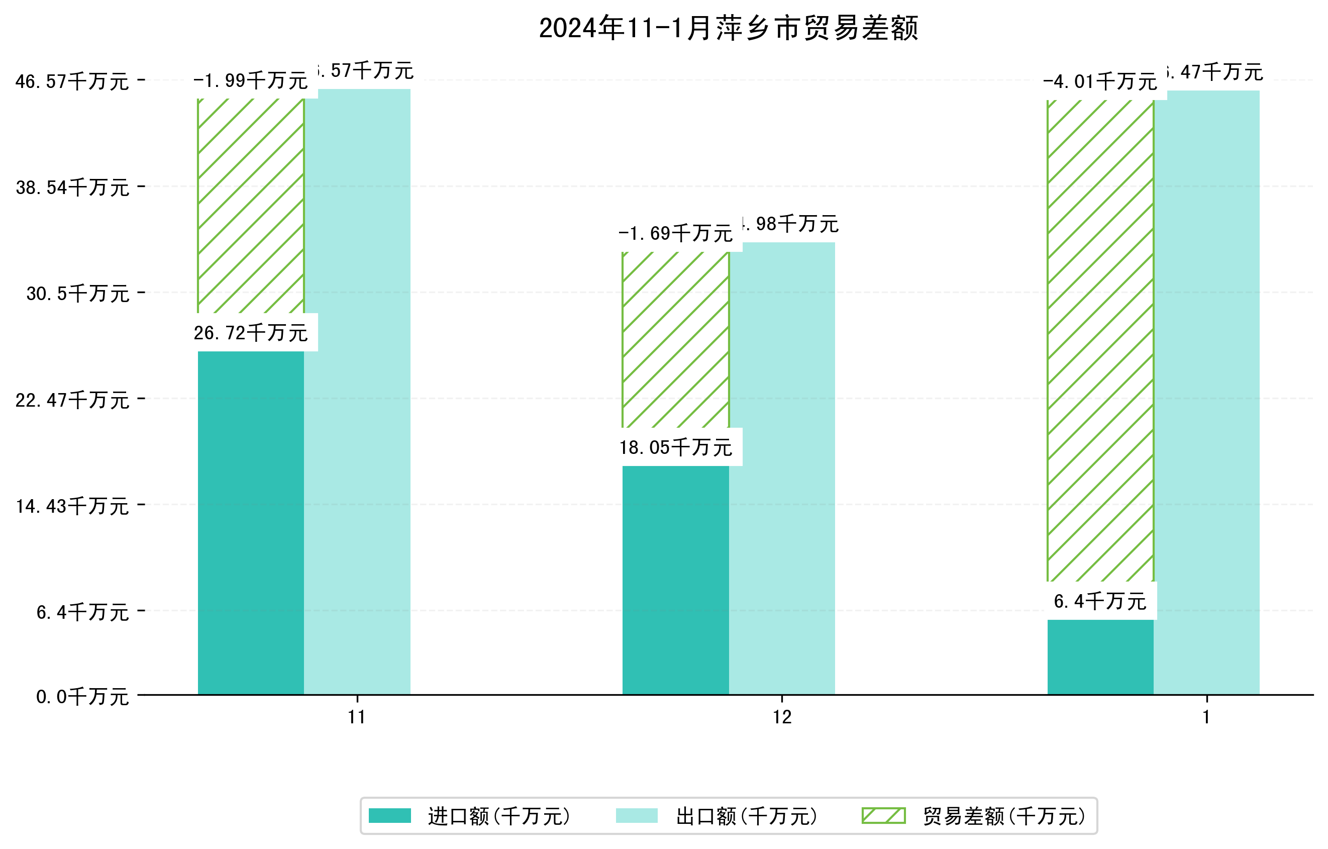 一、2024年1月萍乡市单月出口总额及进出口差额统计分析