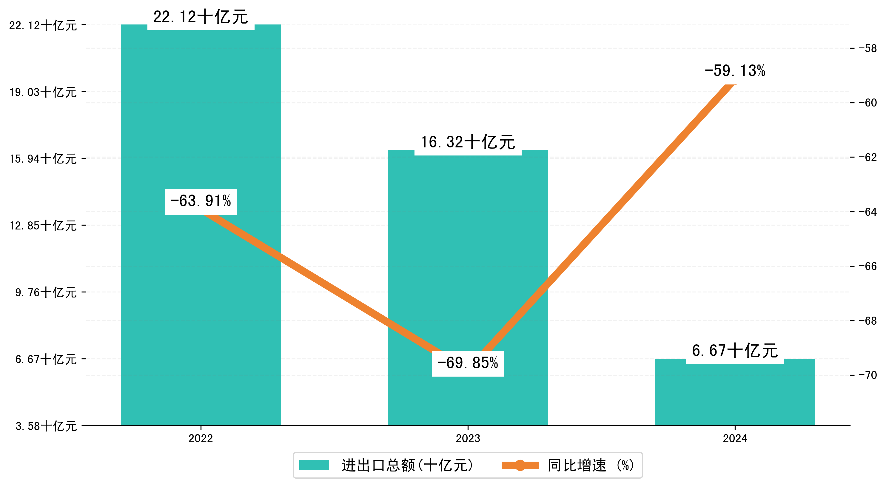 以人民币计,2024年1-12月萍乡市进出口总额为66,7009.1152万元,相比上年同期减少了96,5085.5667万元,同比减少了-59.10%。