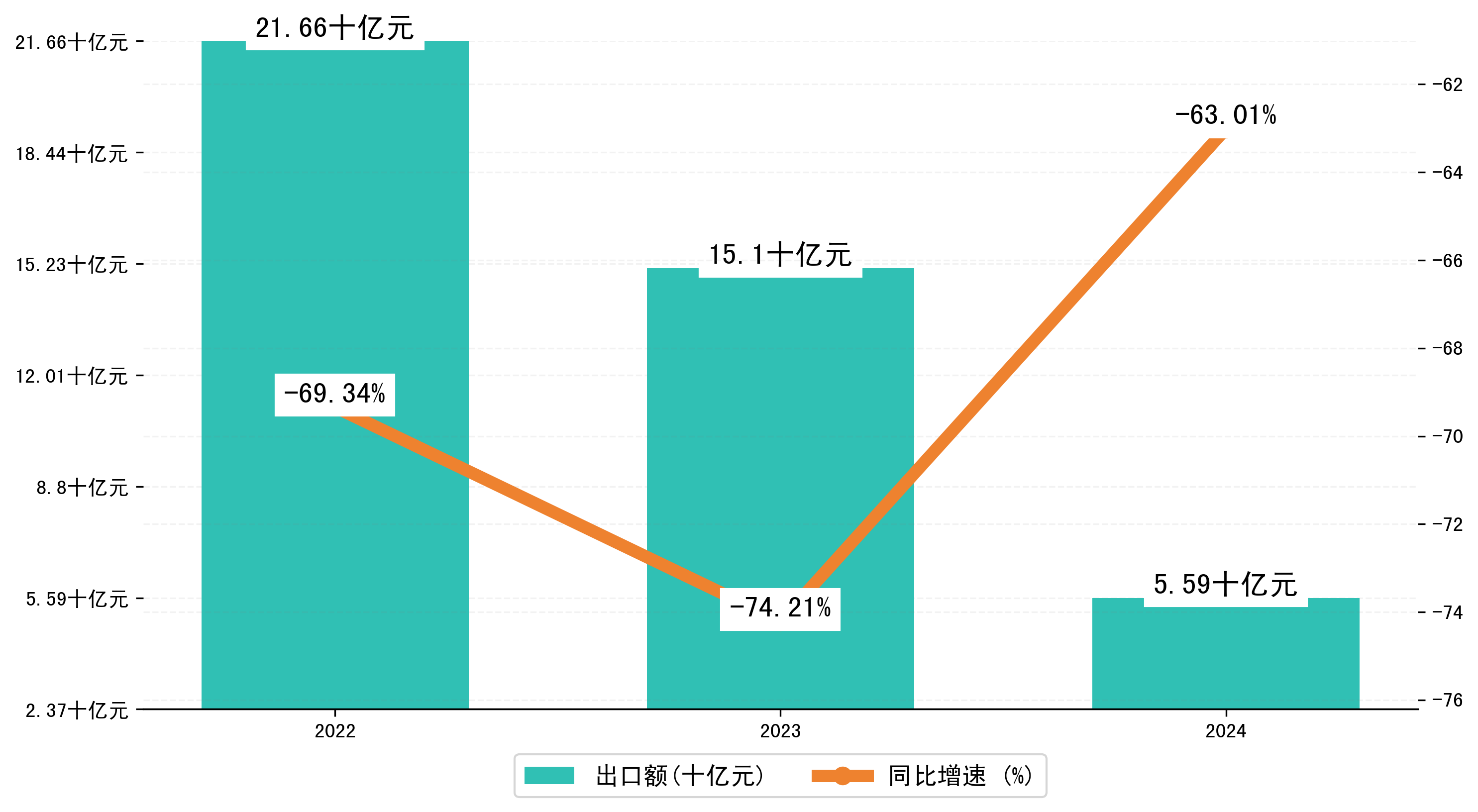 以人民币计,2024年1-12月萍乡市出口额为55,8580.5669万元,相比上年同期减少了95,1574.4395万元,同比减少了-63.00%。