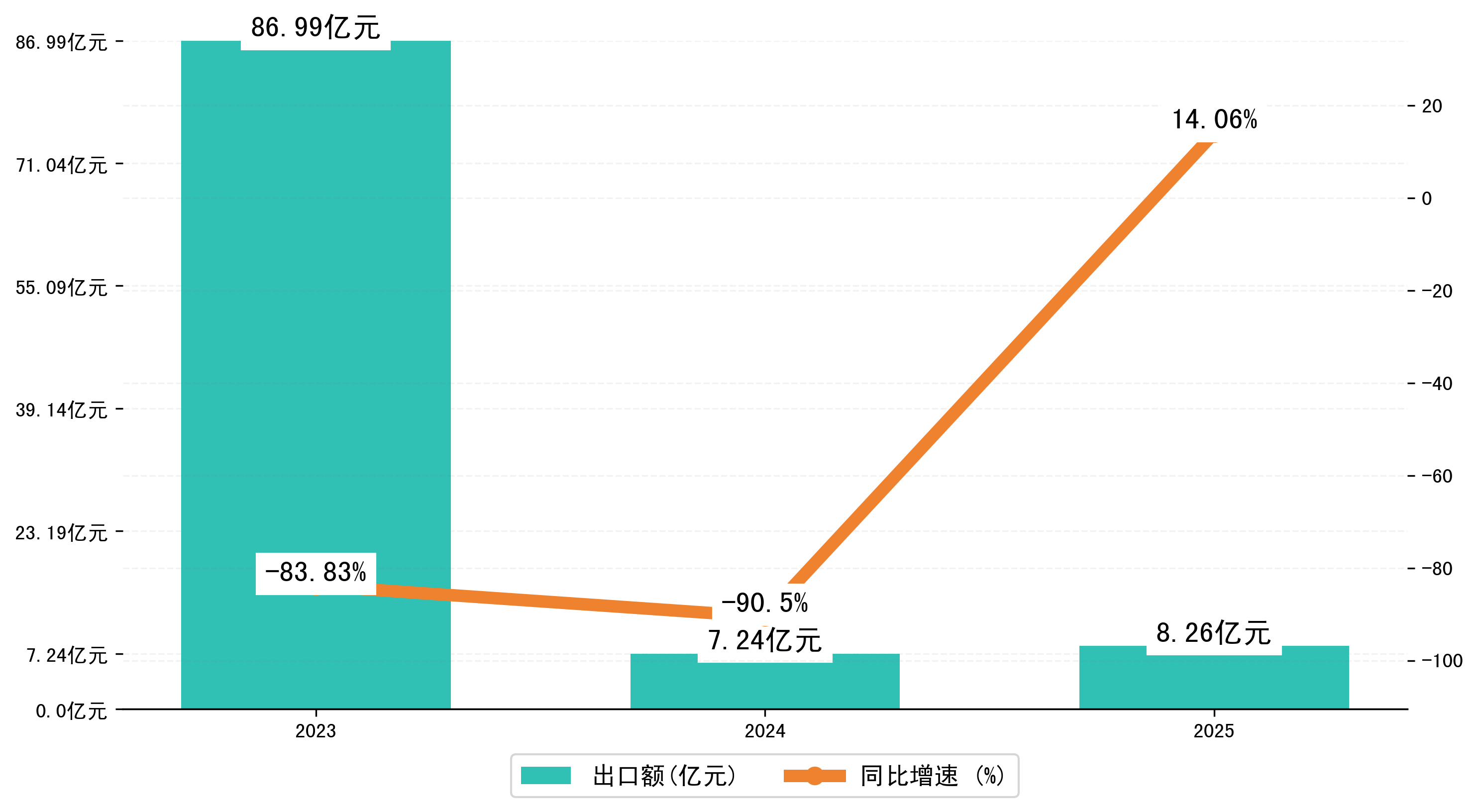 以人民币计,2025年1-2月萍乡市出口额为8,2635.988万元,相比上年同期增加了1,0187.2813万元,同比增加了14.00%。