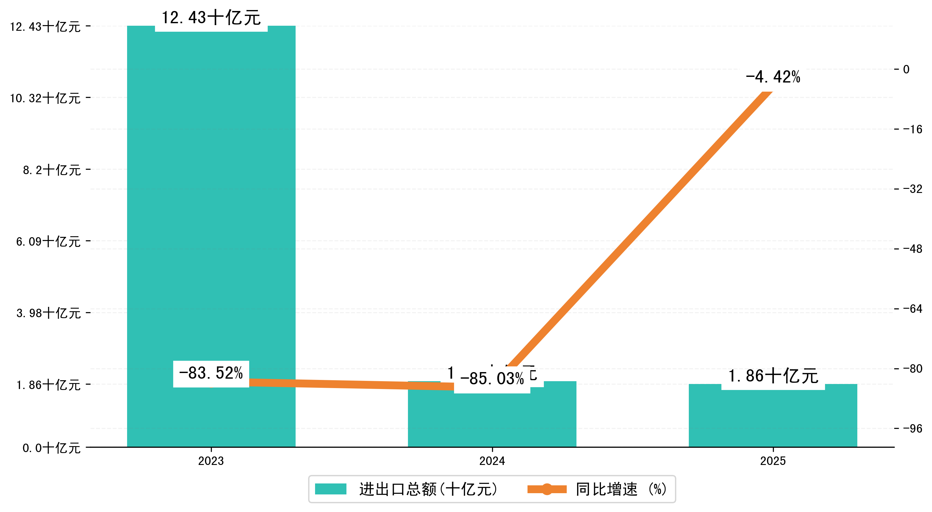 以人民币计,2025年1-4月萍乡市进出口总额为18,6153.3186万元,相比上年同期减少了8611.8286万元,同比减少了-4.50%。