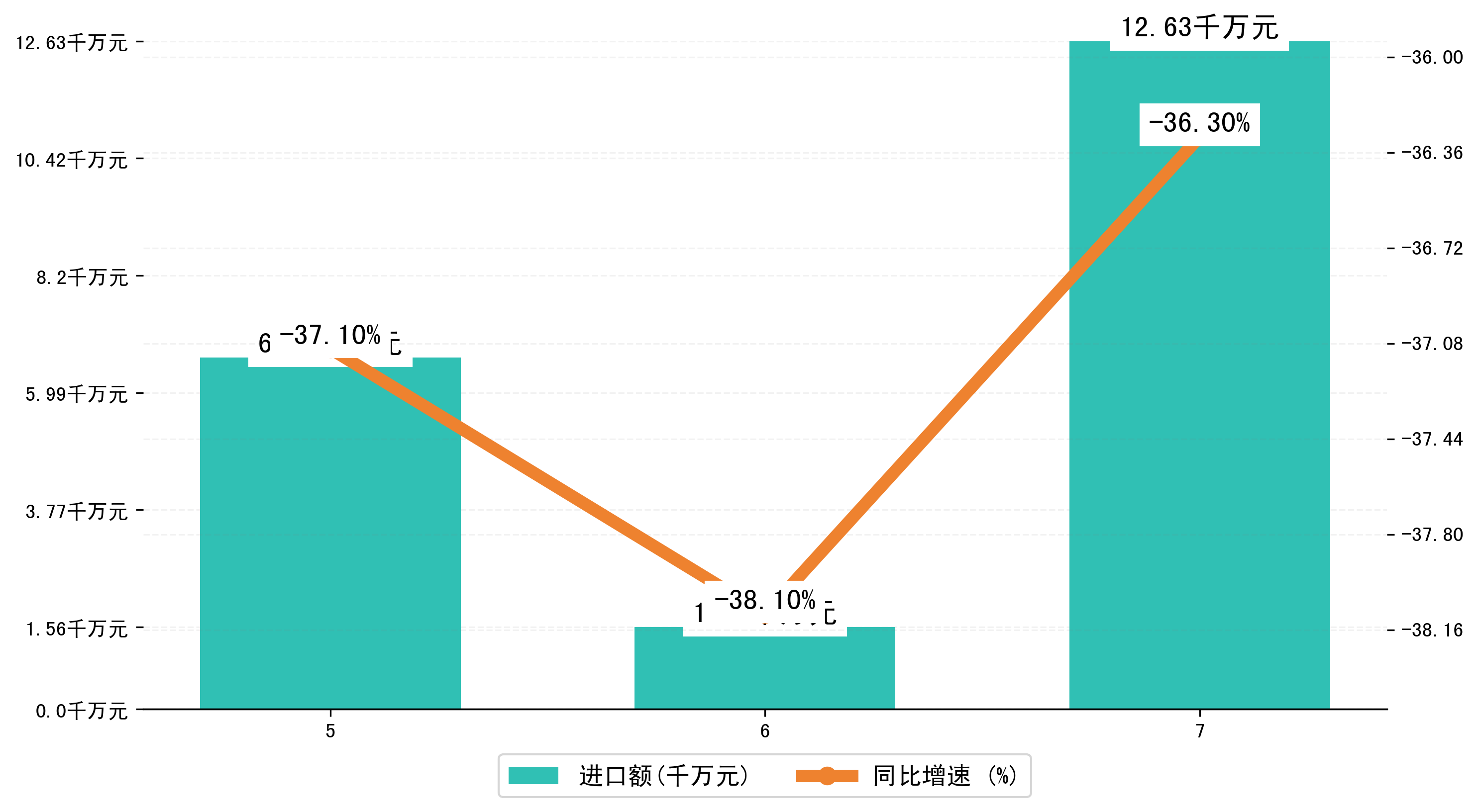 以人民币计,2025年1-7月萍乡市进口额为5,0072.6271万元,相比上年同期减少了2,8445.5893万元,同比减少了-36.30%。