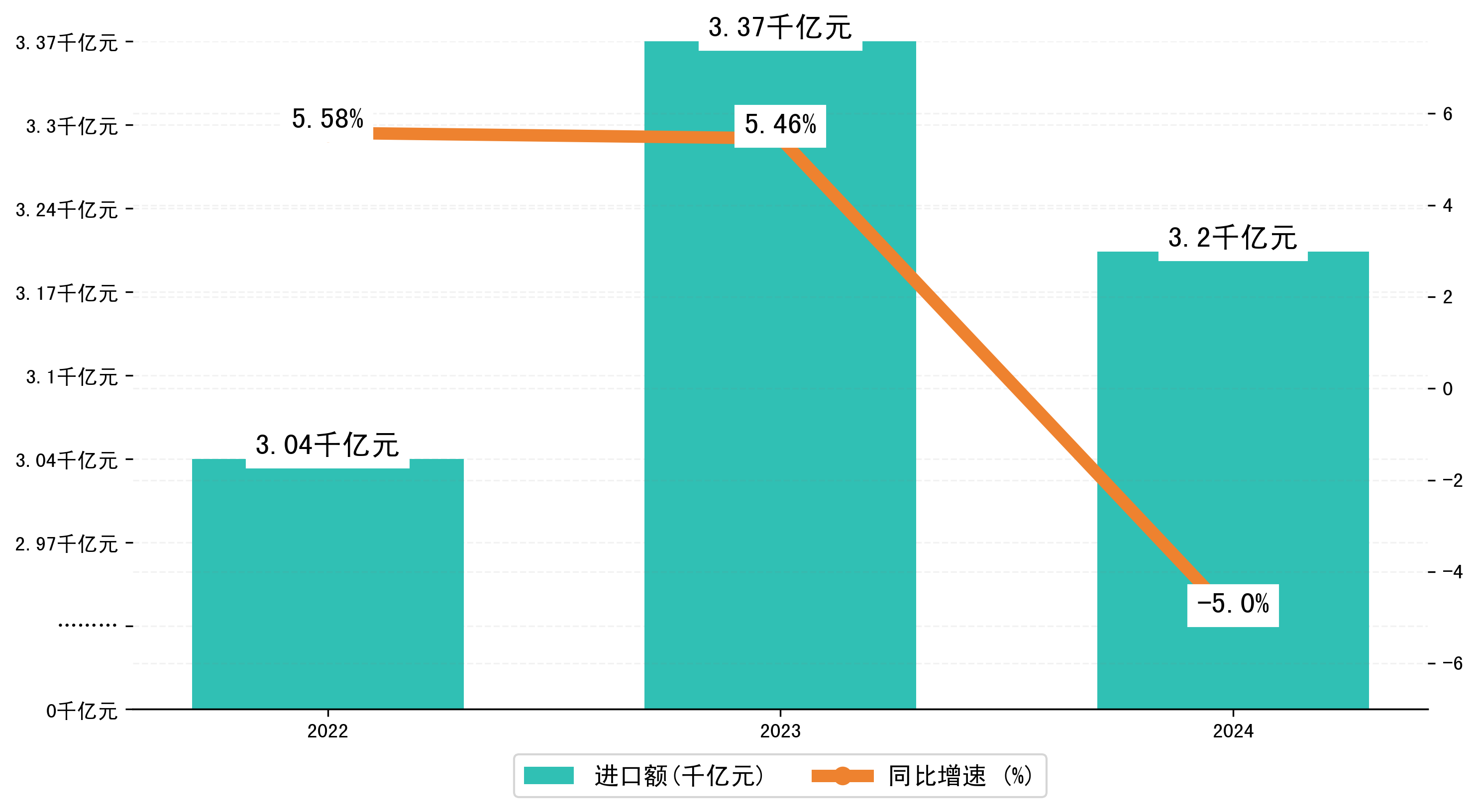 以人民币计,2024年1-10月青岛市进口额为3200,9954.0534万元,相比上年同期减少了168,4709.4802万元,同比减少了-5.20%。