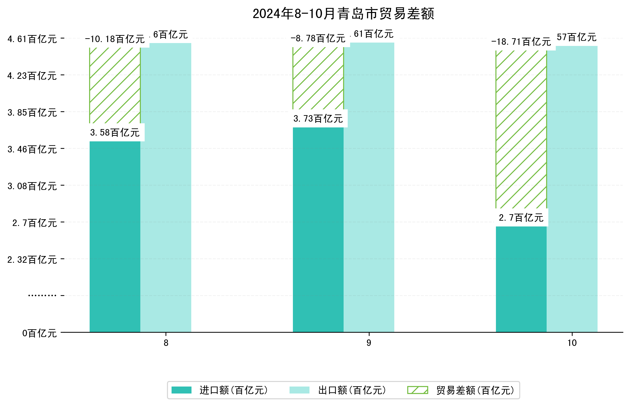 2024年10月青岛市进出口总额及进出口差额统计分析