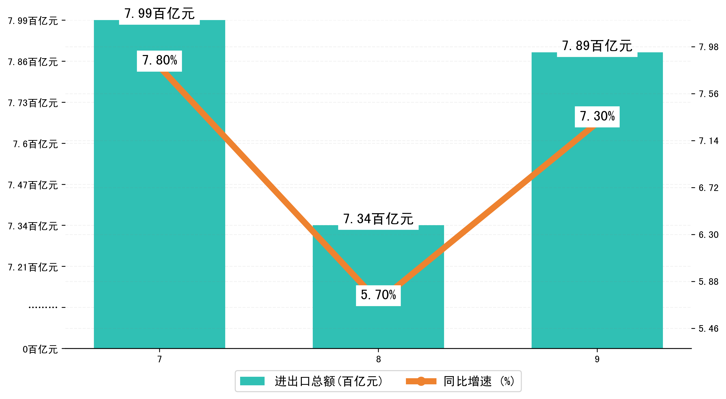 (图一:2023年7-9月青岛市进出口总额)