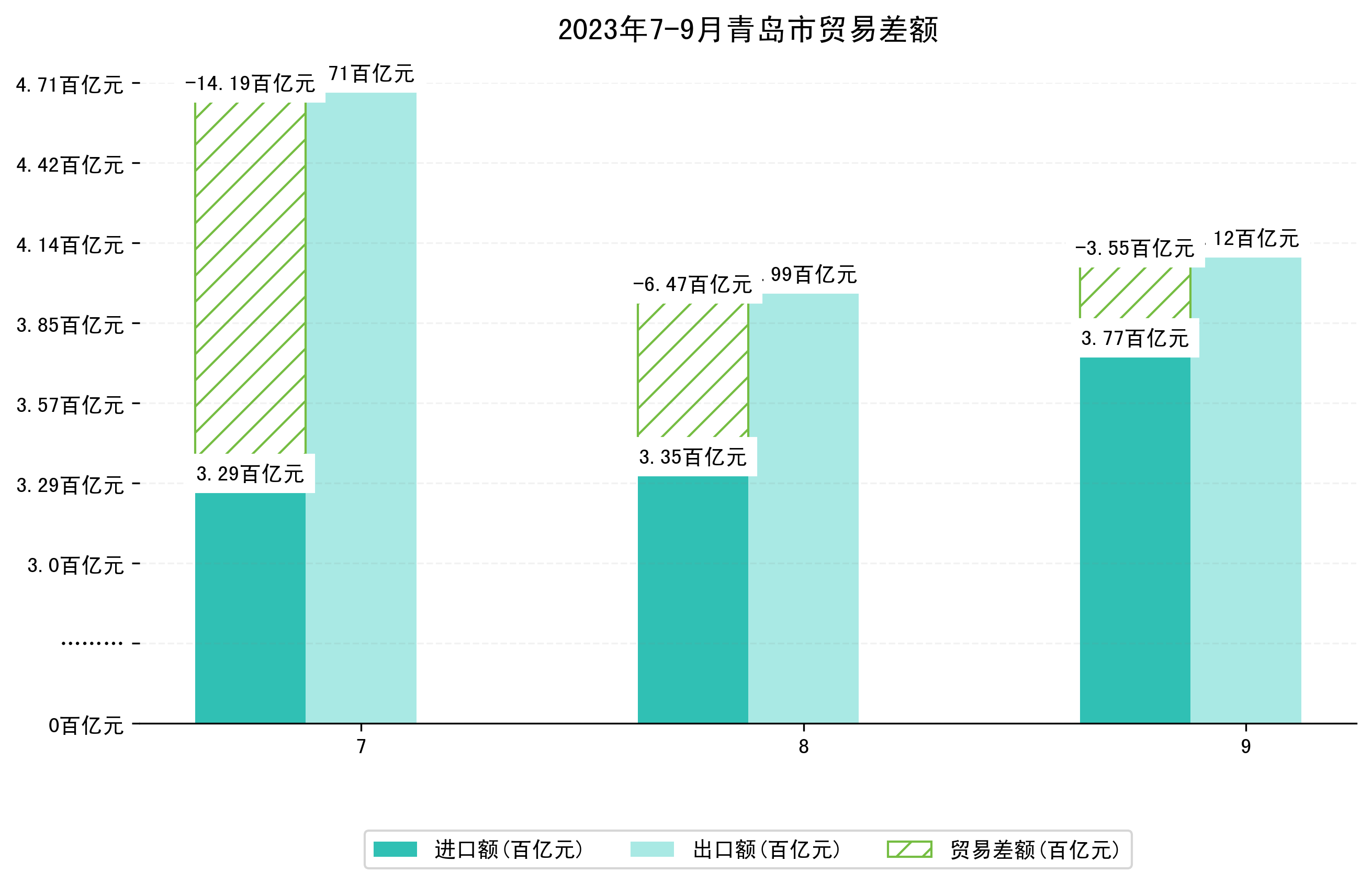 (图四:2023年7-9月青岛市贸易差额)