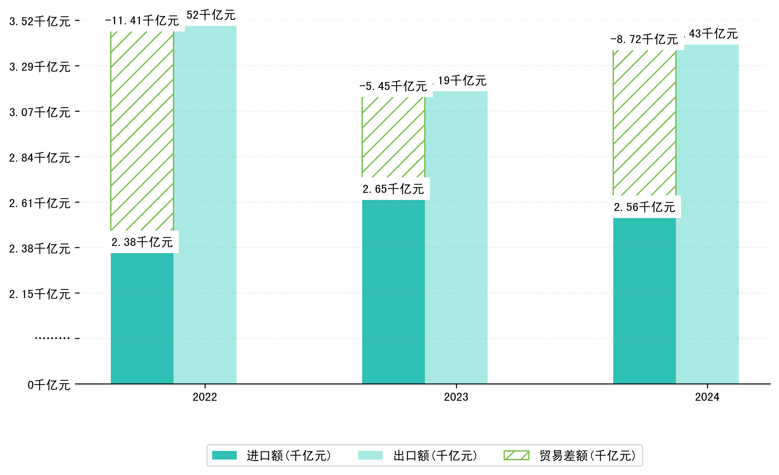 以美元计,2024年1-8月青岛市贸易差额为122,6476,1442万美元(贸易顺差),相比上年同期增加了44,6382,1039万美元,同比增加57.22%。