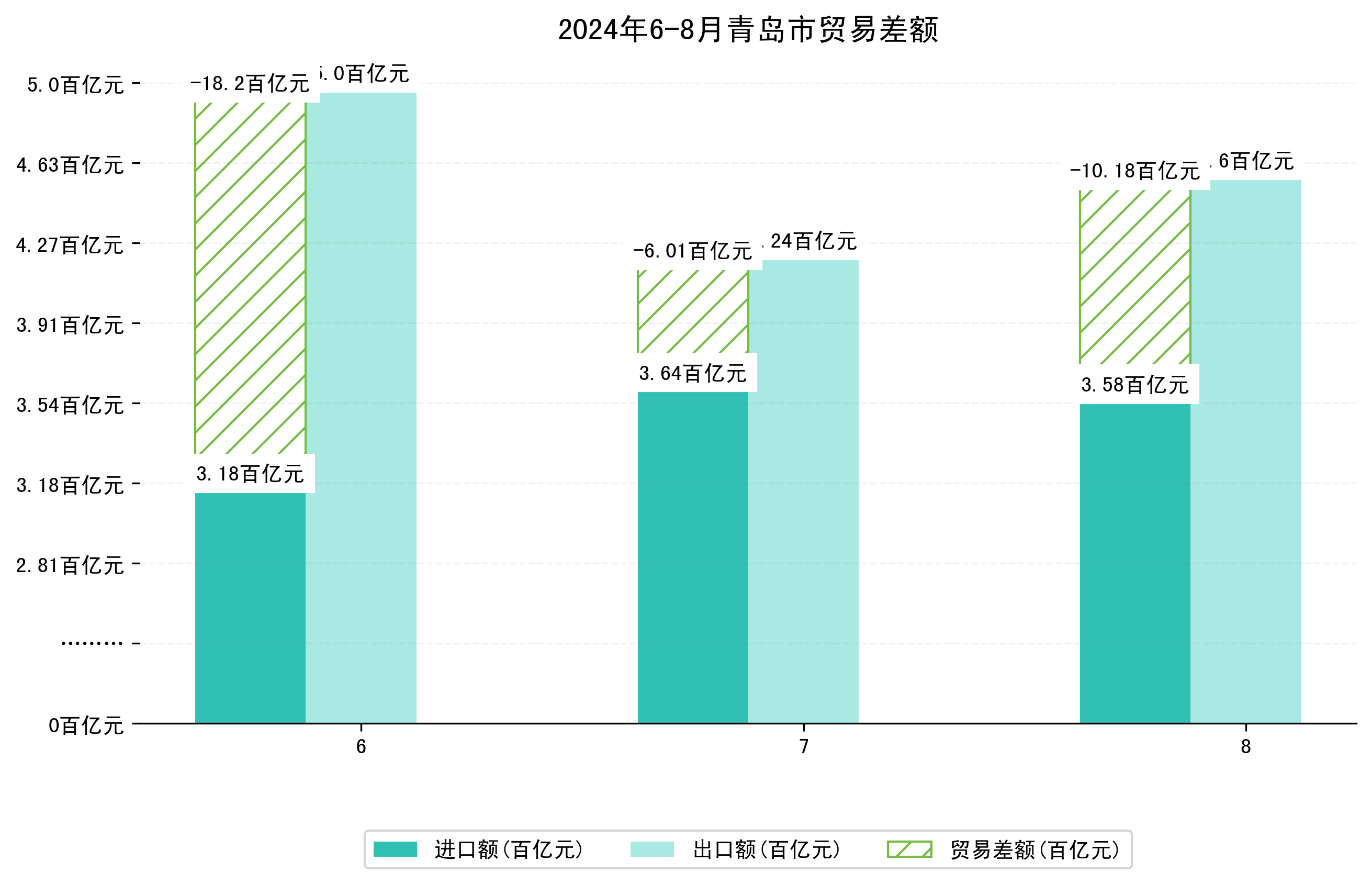2024年8月青岛市进出口总额及进出口差额统计分析
