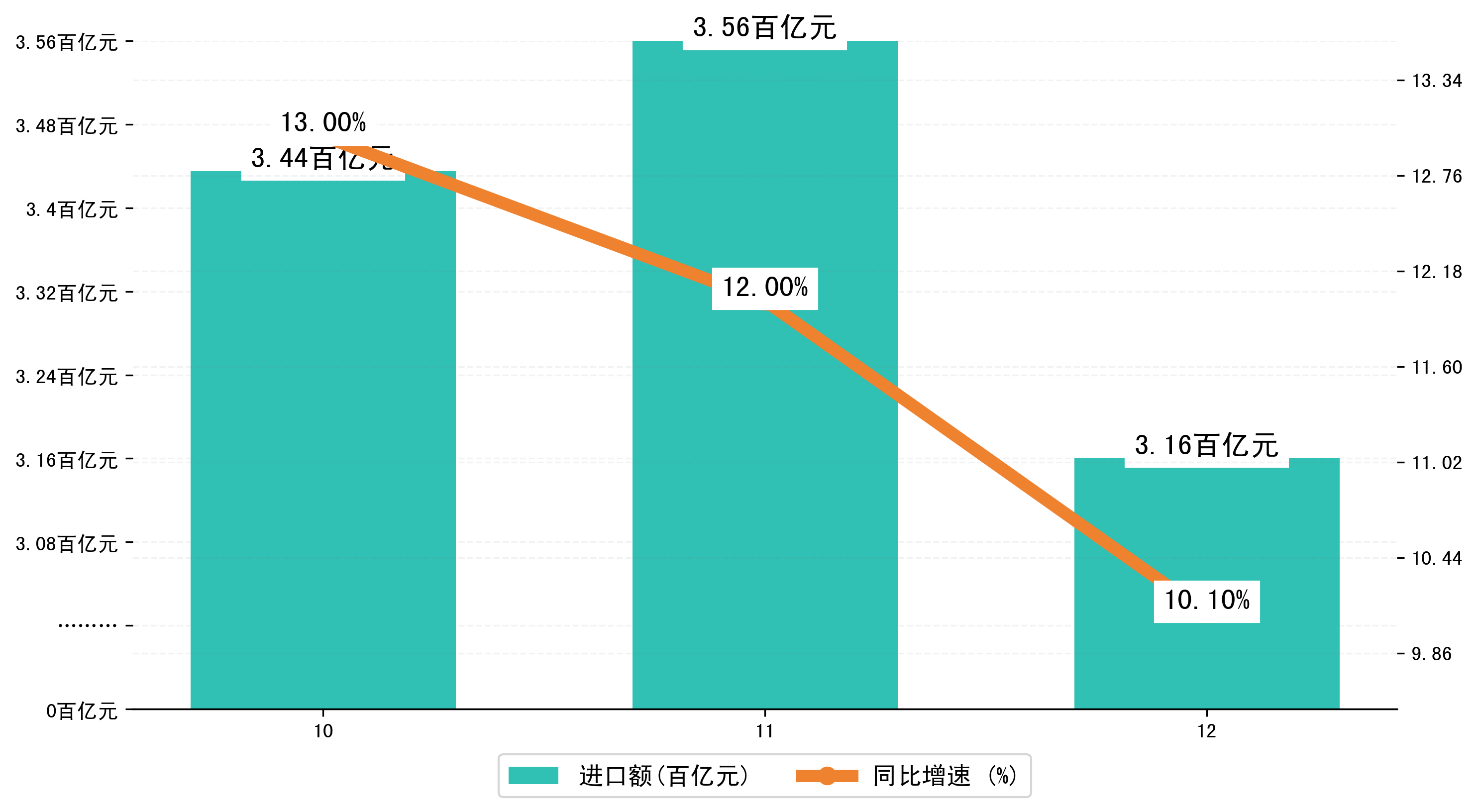 以人民币计,2023年12月青岛市进口额为315,9171.9149万元,相比上月减少了40,5708.4811万元;相比上年同期减少了43,2946.6475万元,同比增加了10.10%。