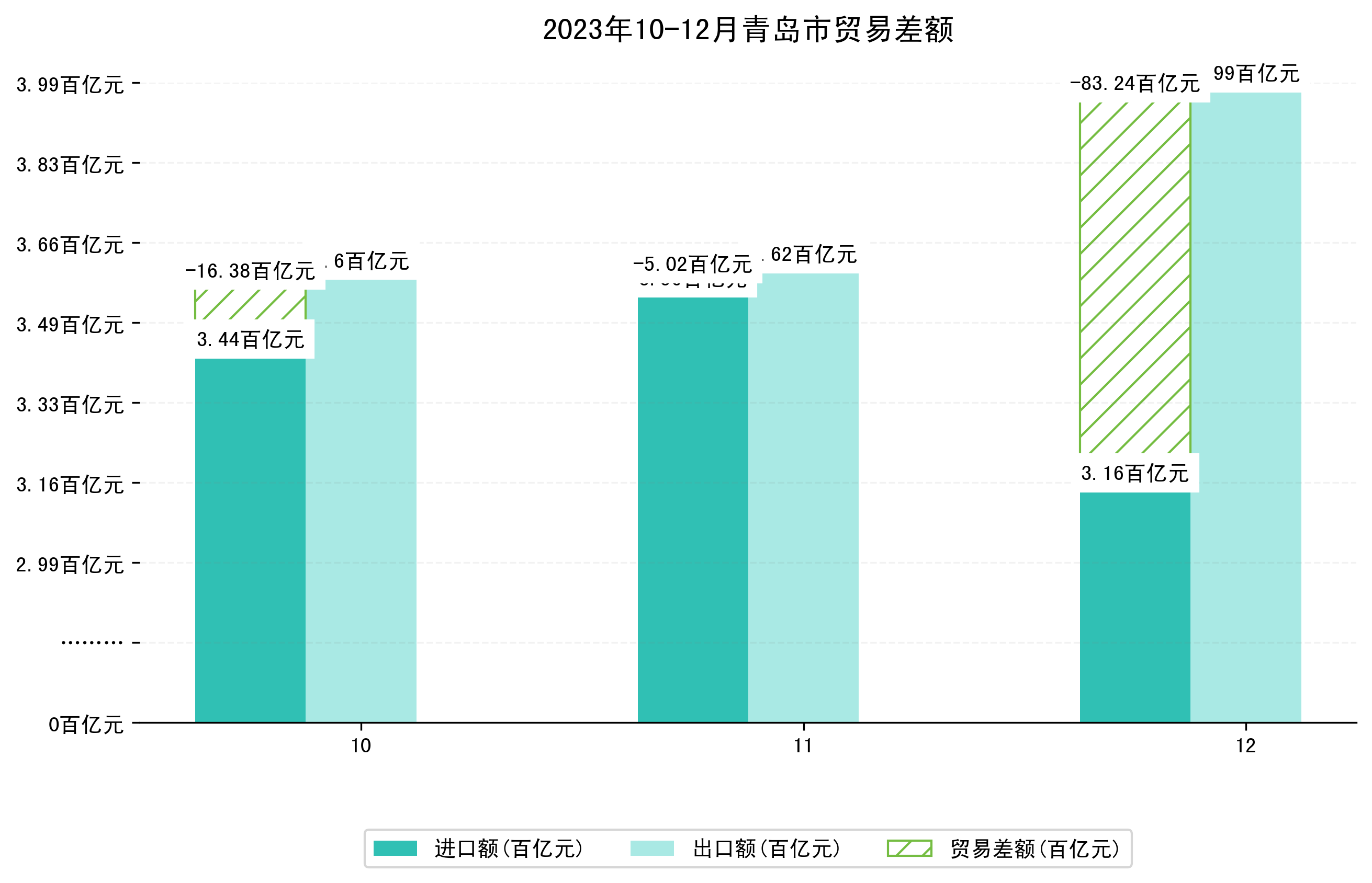 2023年12月青岛市进出口总额及进出口差额统计分析