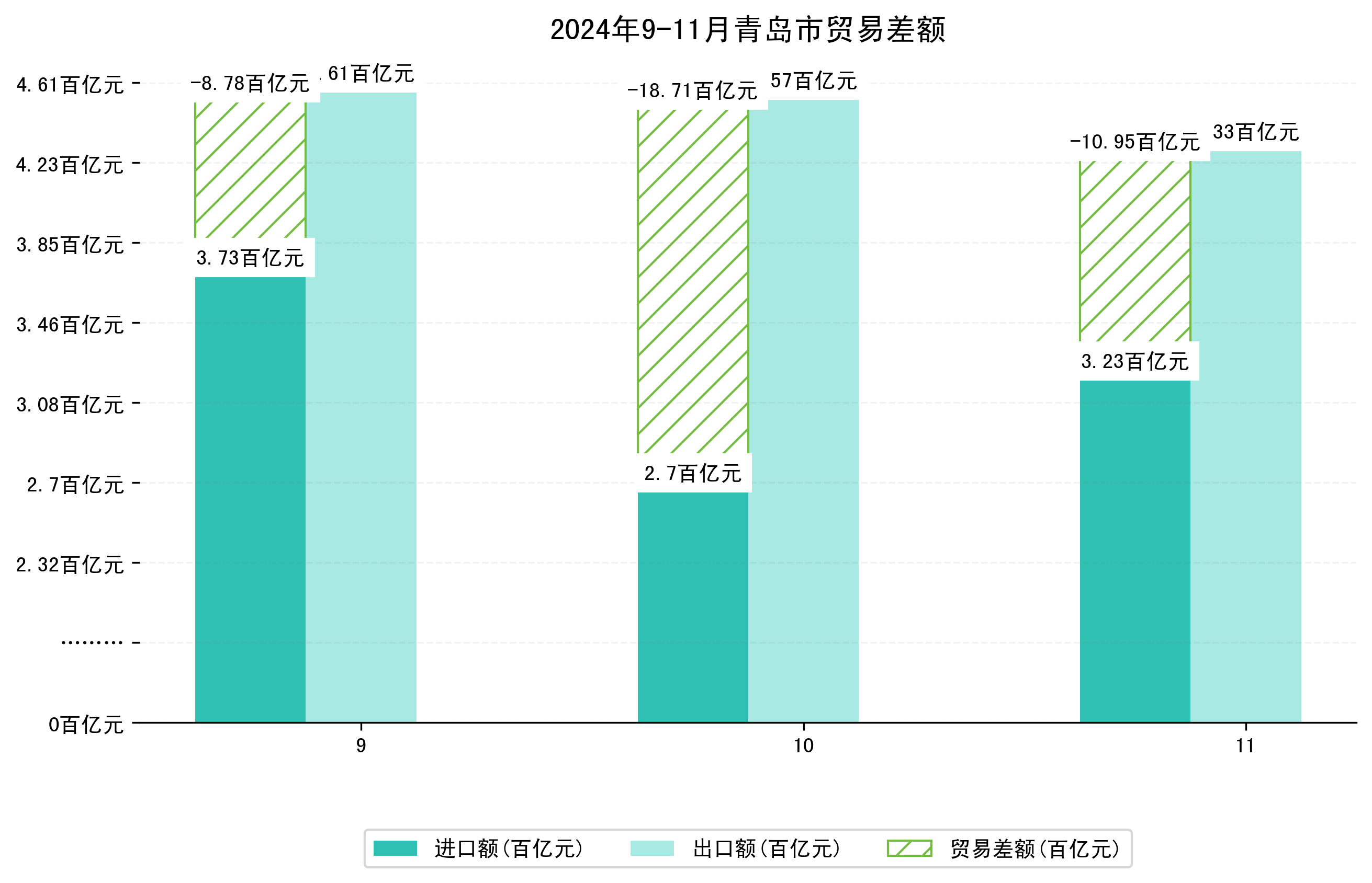 2024年11月青岛市进出口总额及进出口差额统计分析