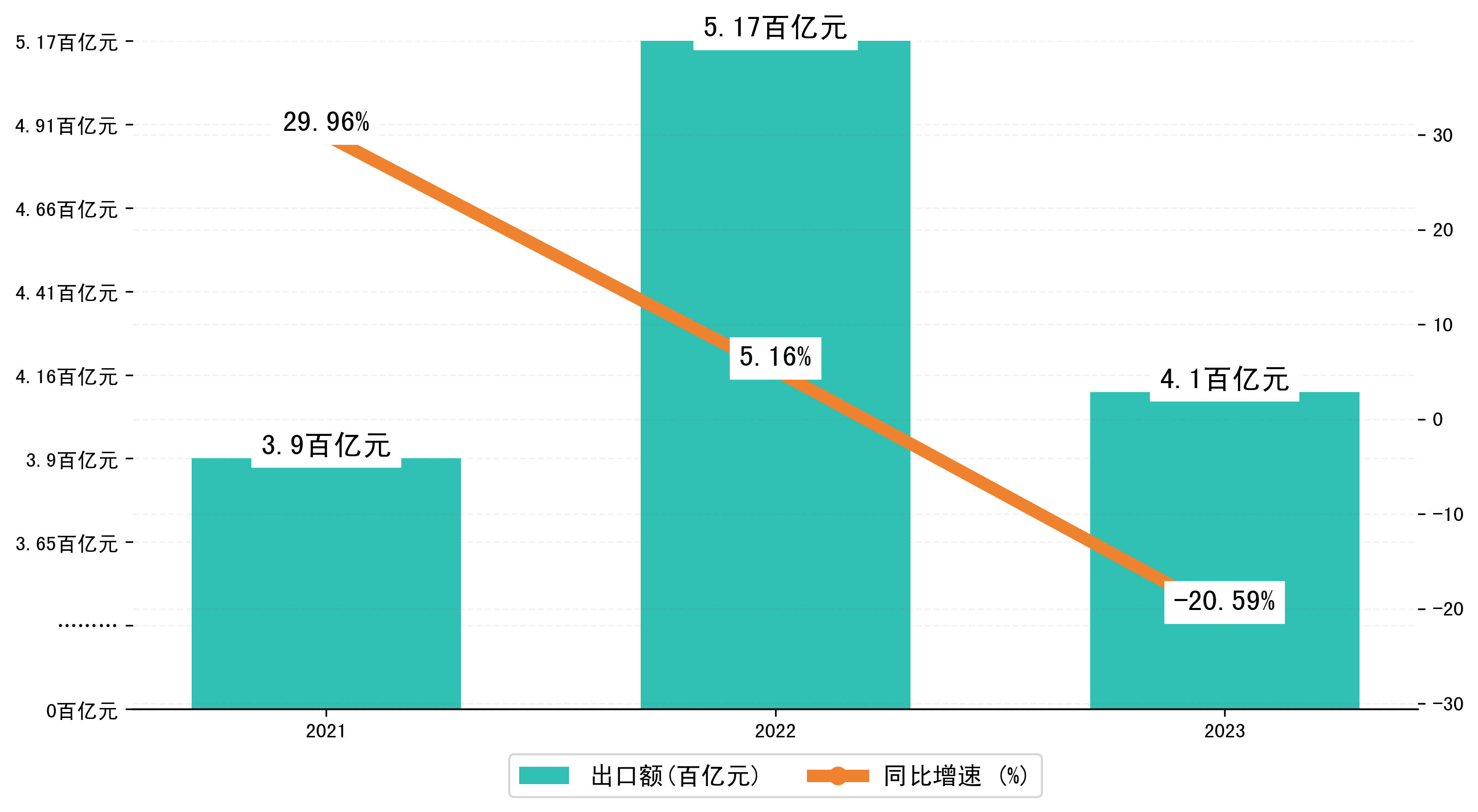 以人民币计,2023年1-1月青岛市出口额为410,3250.7573万元,相比上年同期减少了106,4195.5711万元,同比减少了-20.20%。