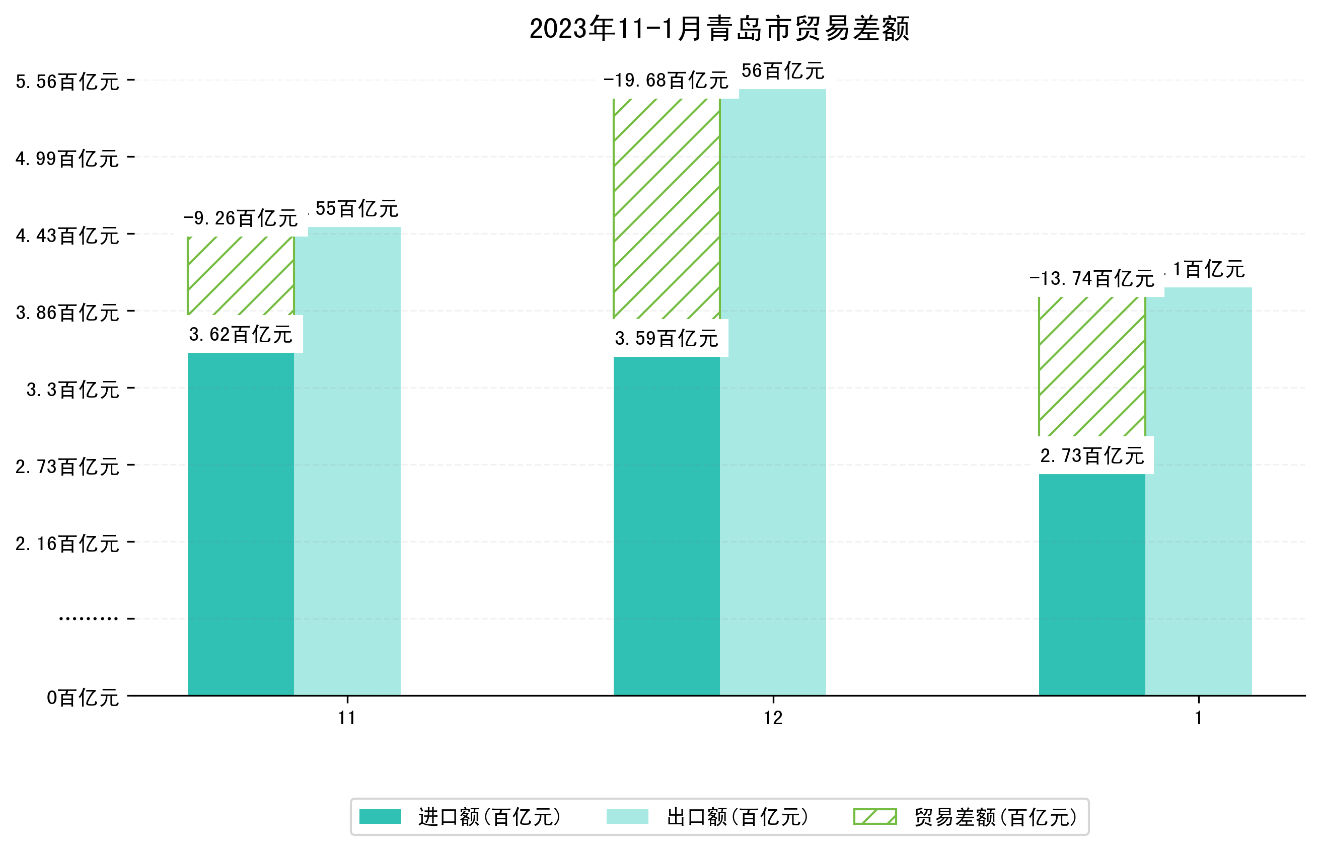 2023年1月青岛市进出口总额及进出口差额统计分析
