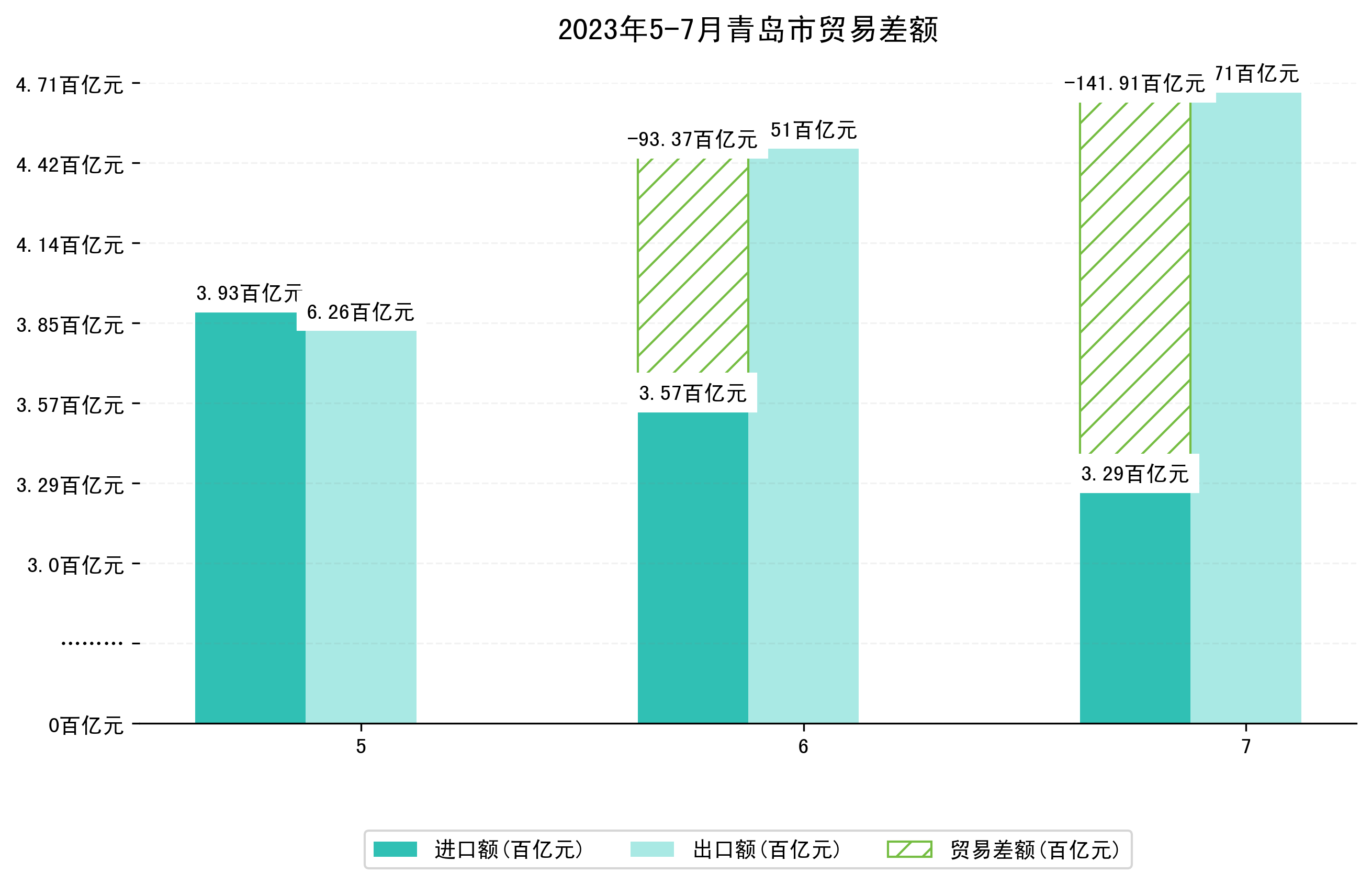 (图四:2023年5-7月青岛市贸易差额)