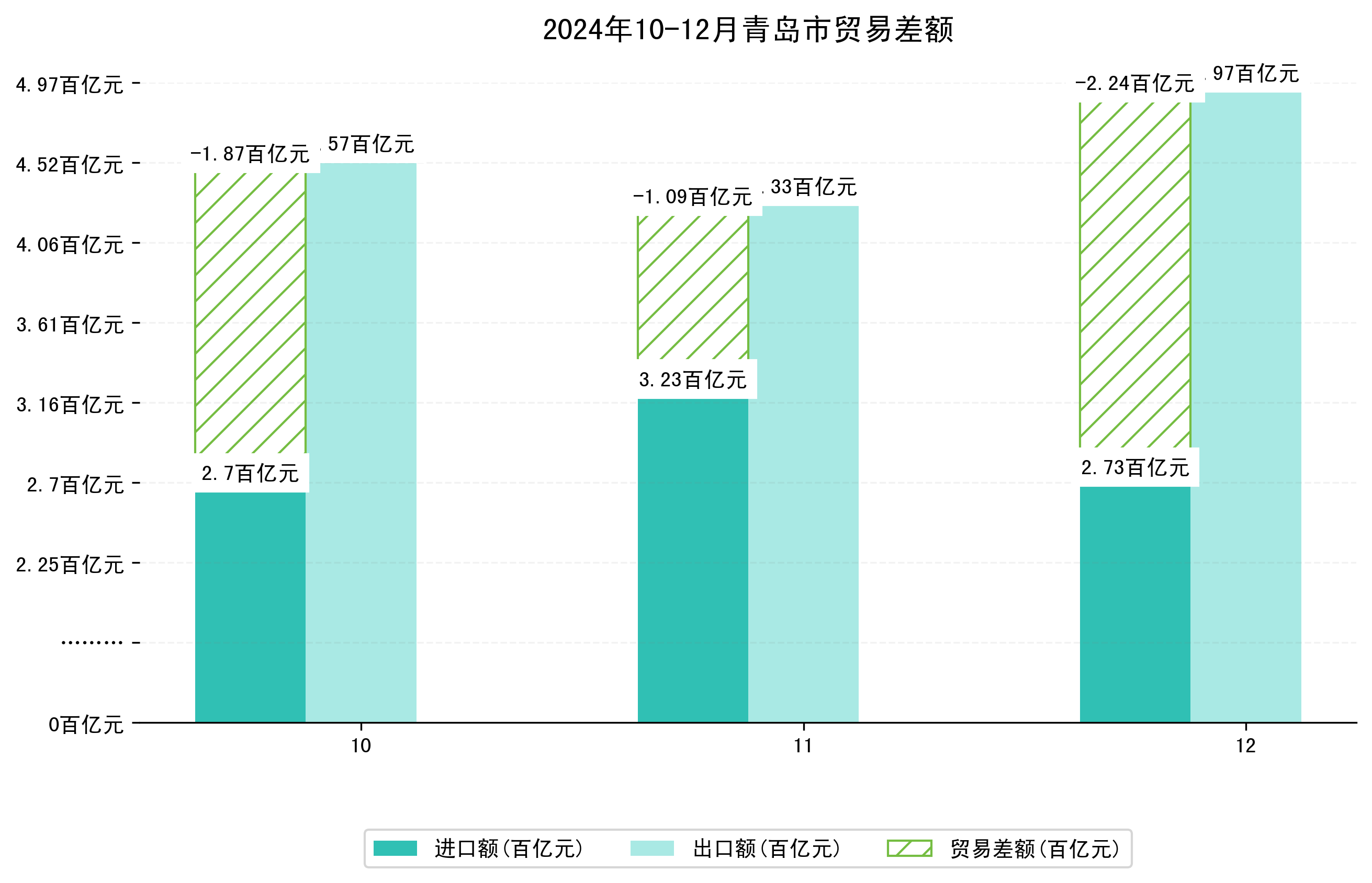 2024年12月青岛市进出口总额及进出口差额统计分析