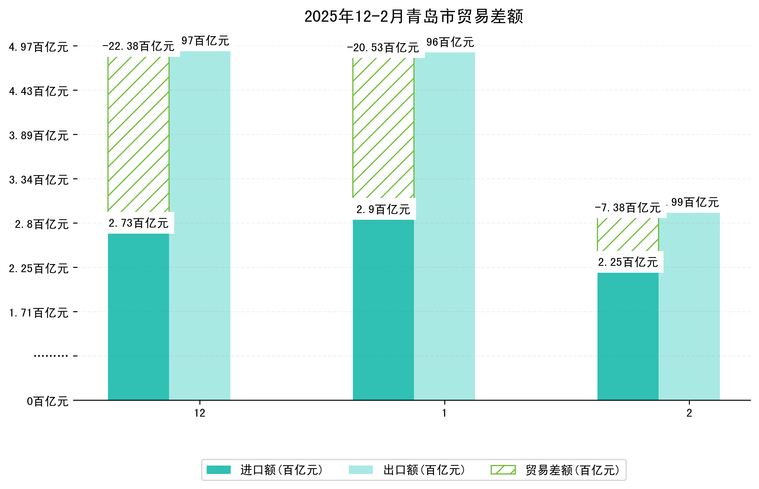 2025年2月青岛市进出口总额及进出口差额统计分析