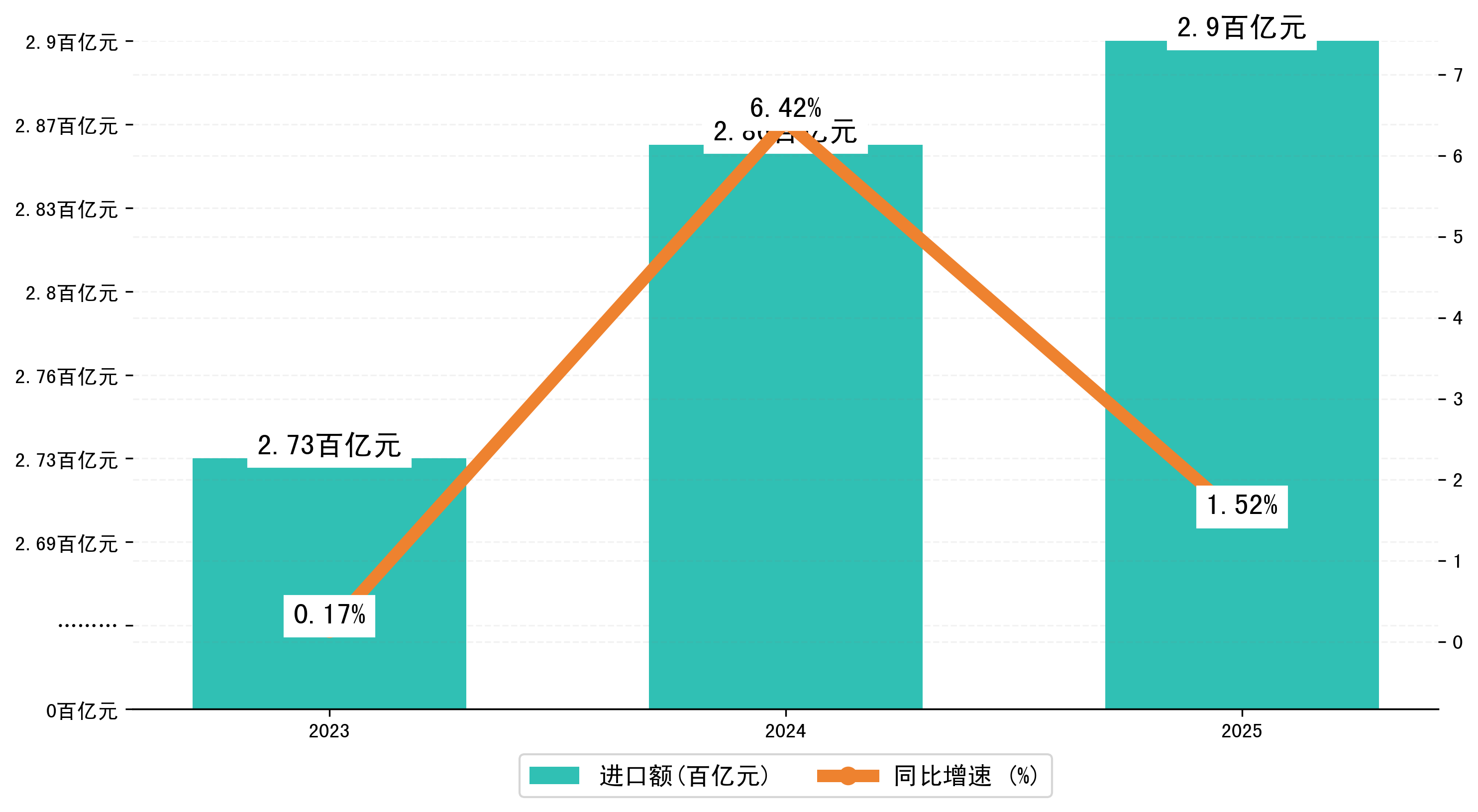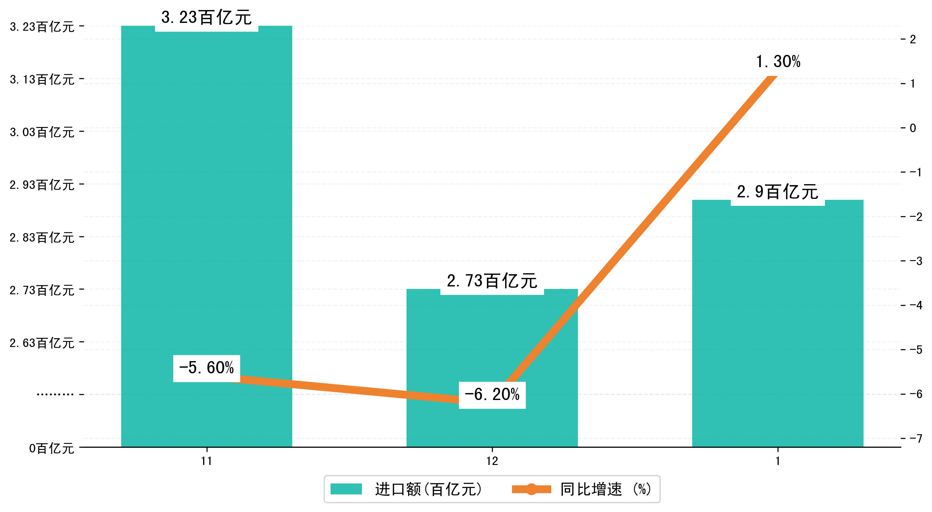以人民币计,2025年1月青岛市进口额为290,4090.4507万元,相比上月增加了16,9354.9611万元;相比上年同期增加了4,3594.1204万元,同比增加了1.30%。