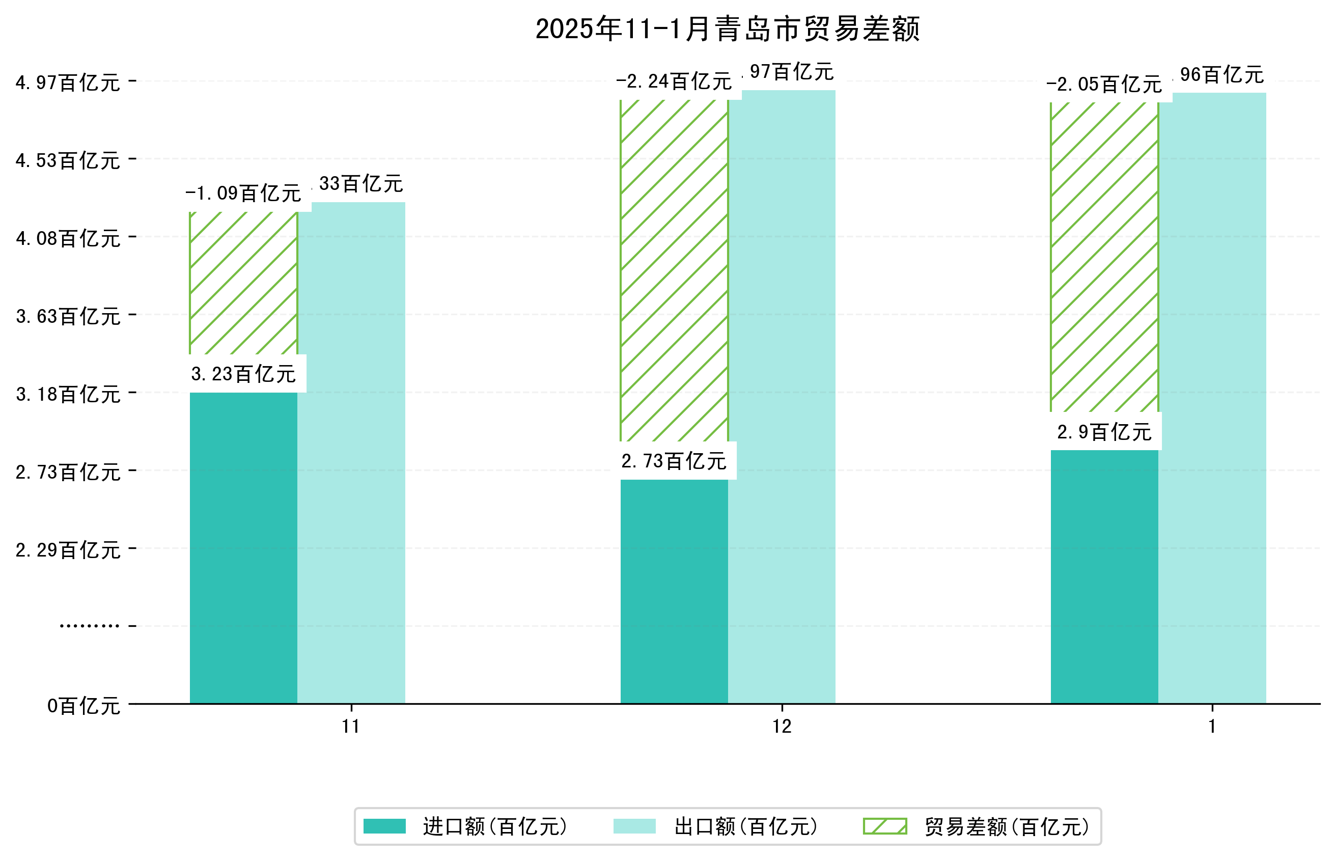 2025年1月青岛市进出口总额及进出口差额统计分析