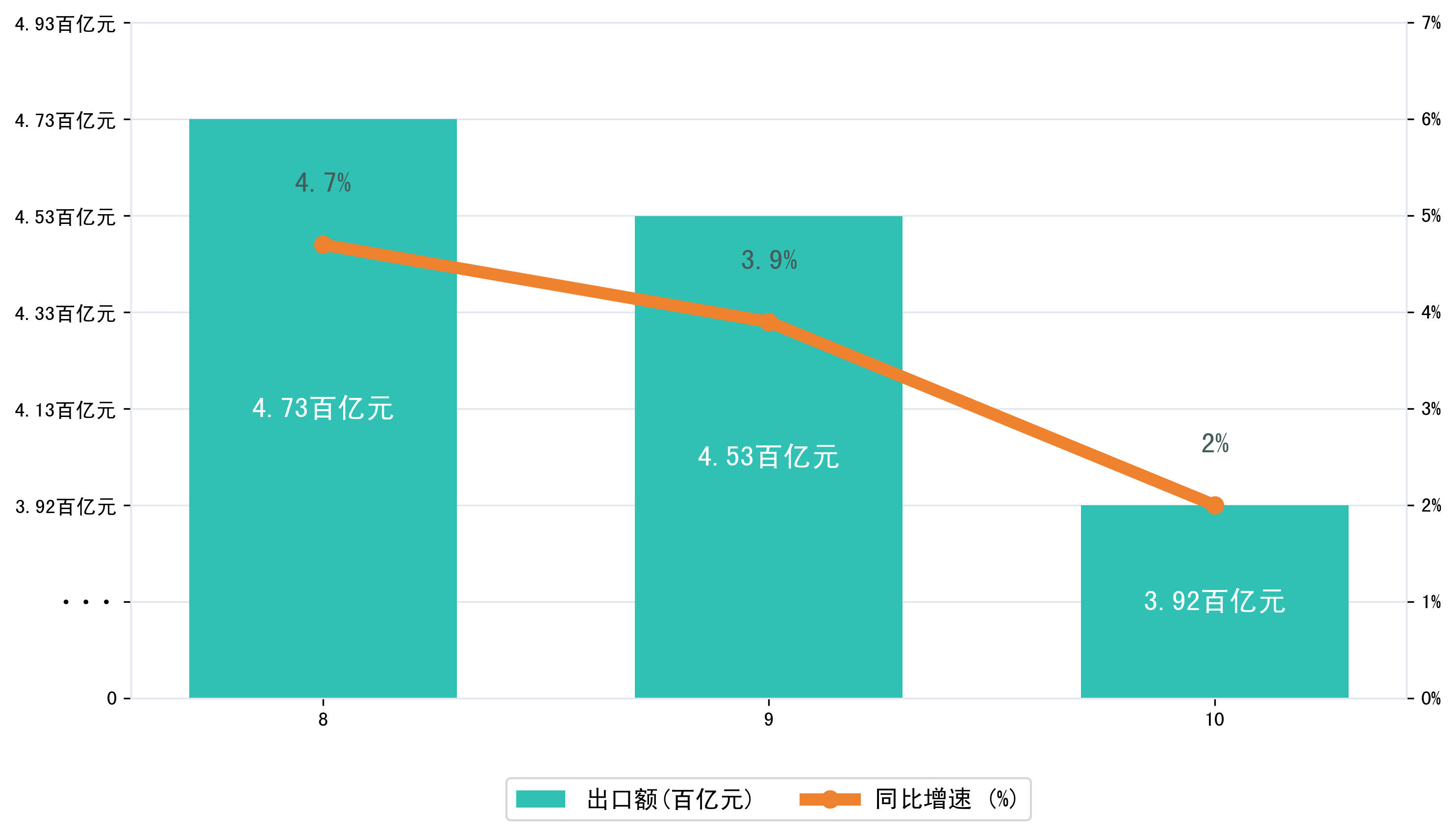 以美元计,2025年1-10月青岛市出口额为618,5001.5451万美元,相比上年同期增加了7,0325.1291万美元,同比增加1.10%。