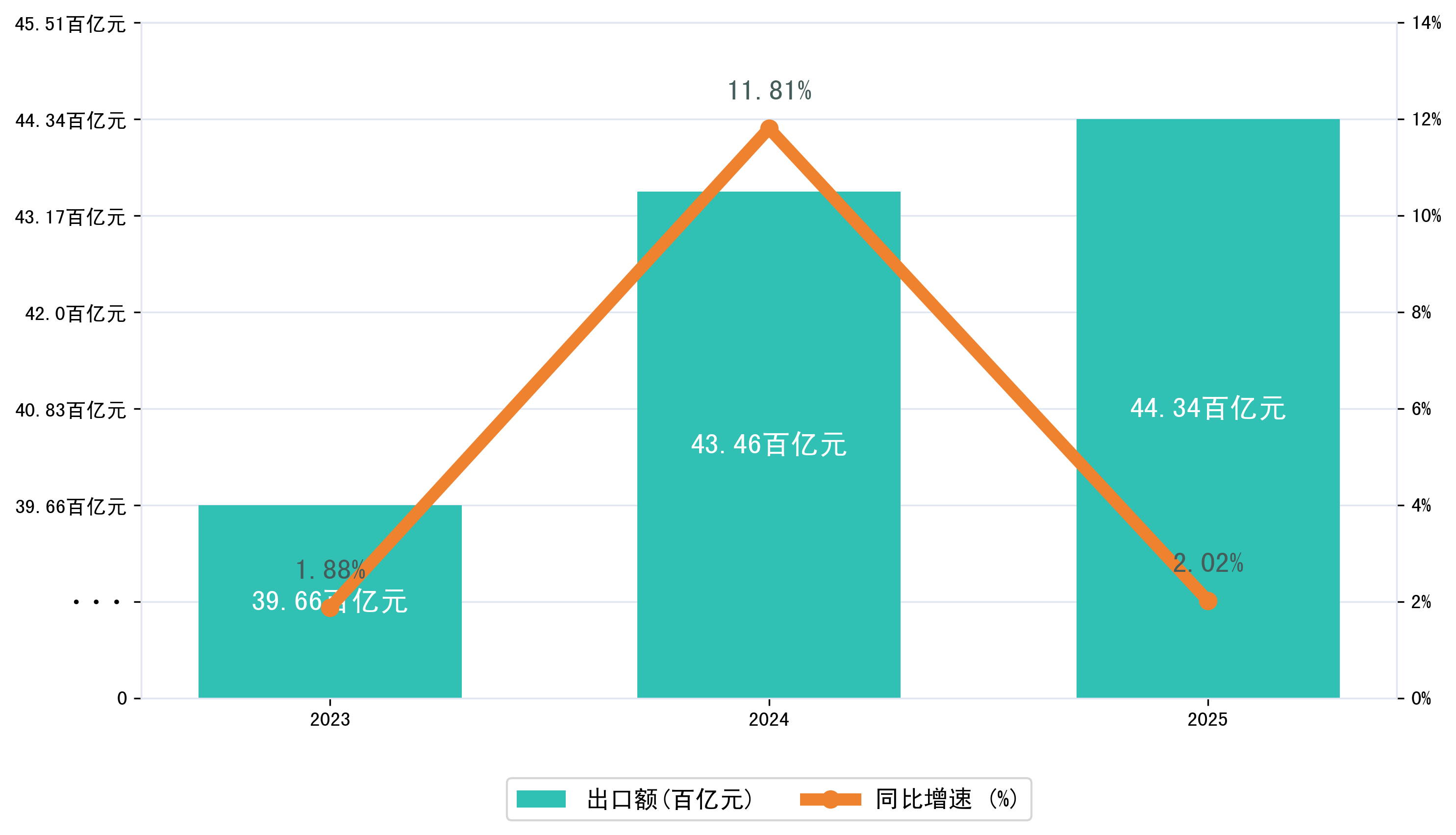 以人民币计,2025年1-10月青岛市出口额为4434,1640.146万元,相比上年同期增加了87,9587.6985万元,同比增加了2.00%。