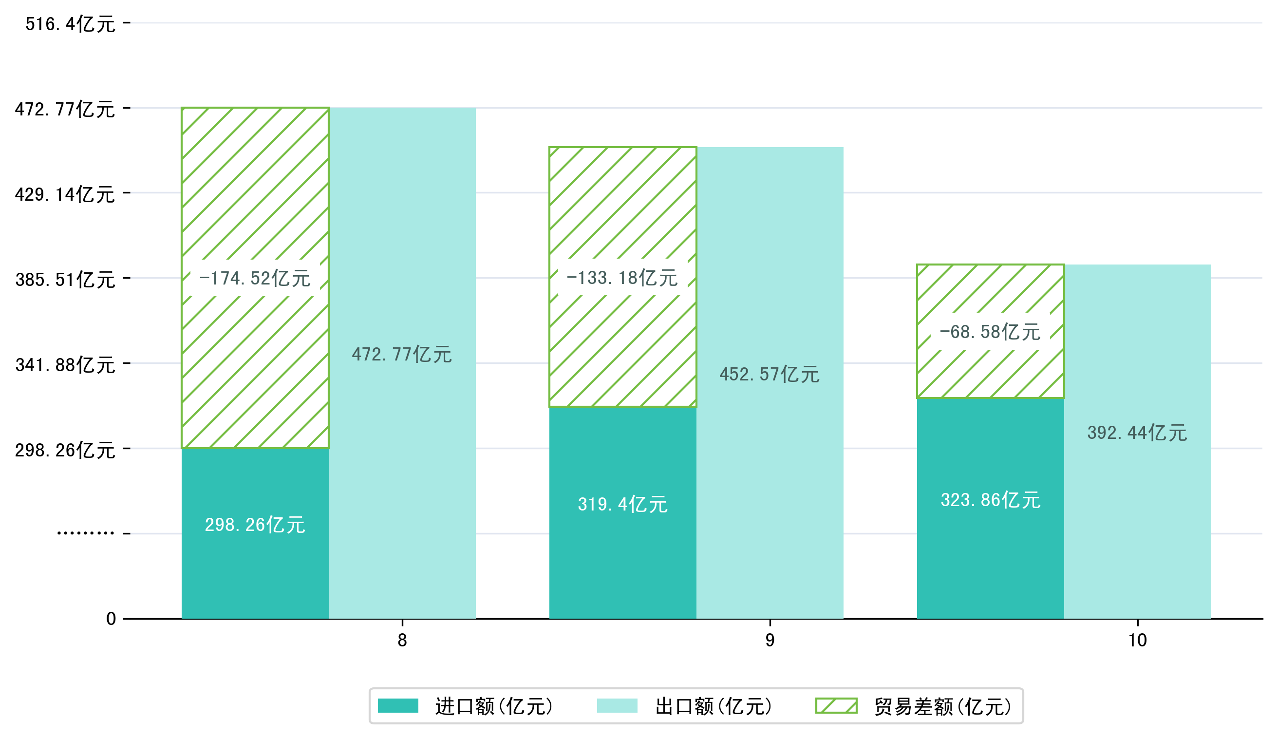 2025年10月青岛市进出口总额及进出口差额统计分析
