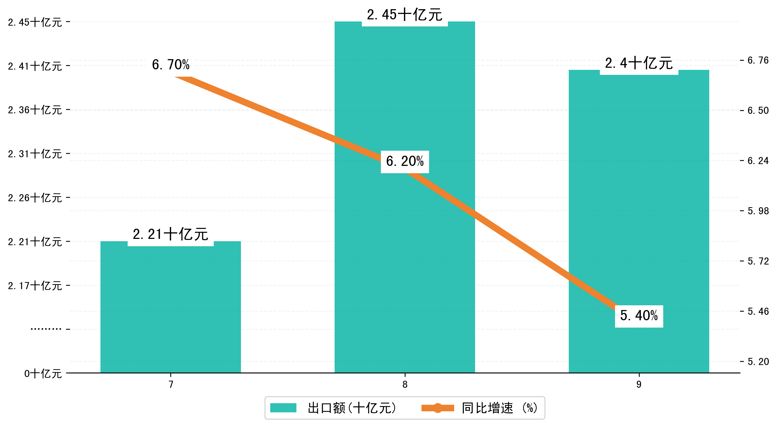 以人民币计,2023年9月秦皇岛市出口额为24,0164.7258万元,相比上月减少了5289.5289万元;相比上年同期增加了7376.9328万元,同比增加了5.40%。