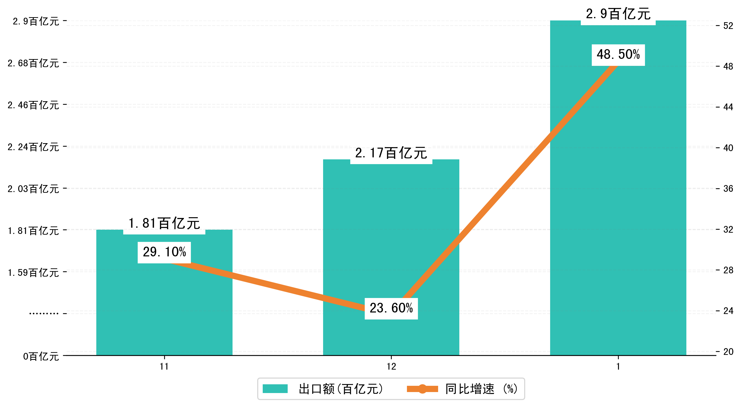 (图二:2023年11-1月长沙市出口额)