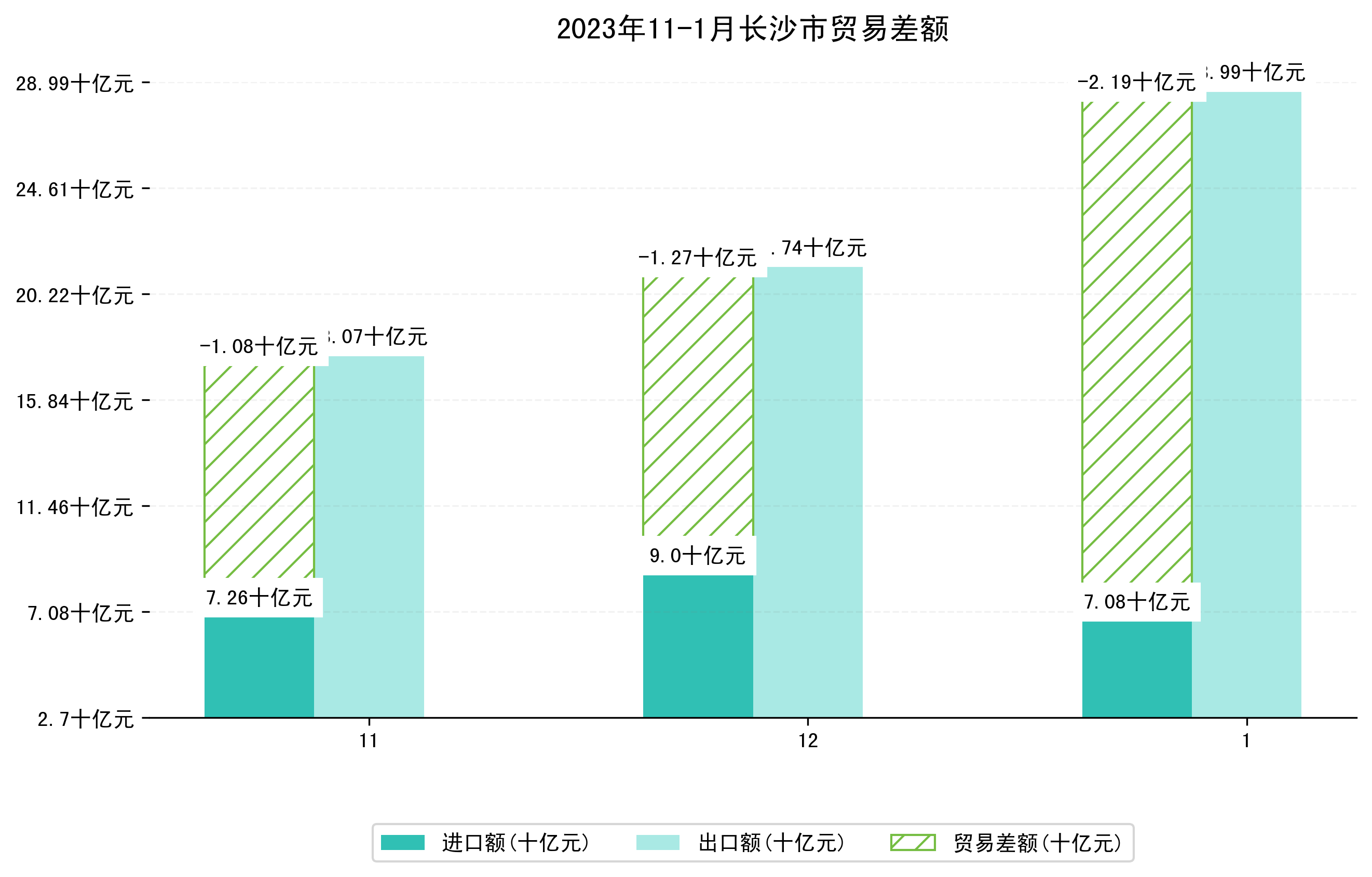 (图四:2023年11-1月长沙市贸易差额)