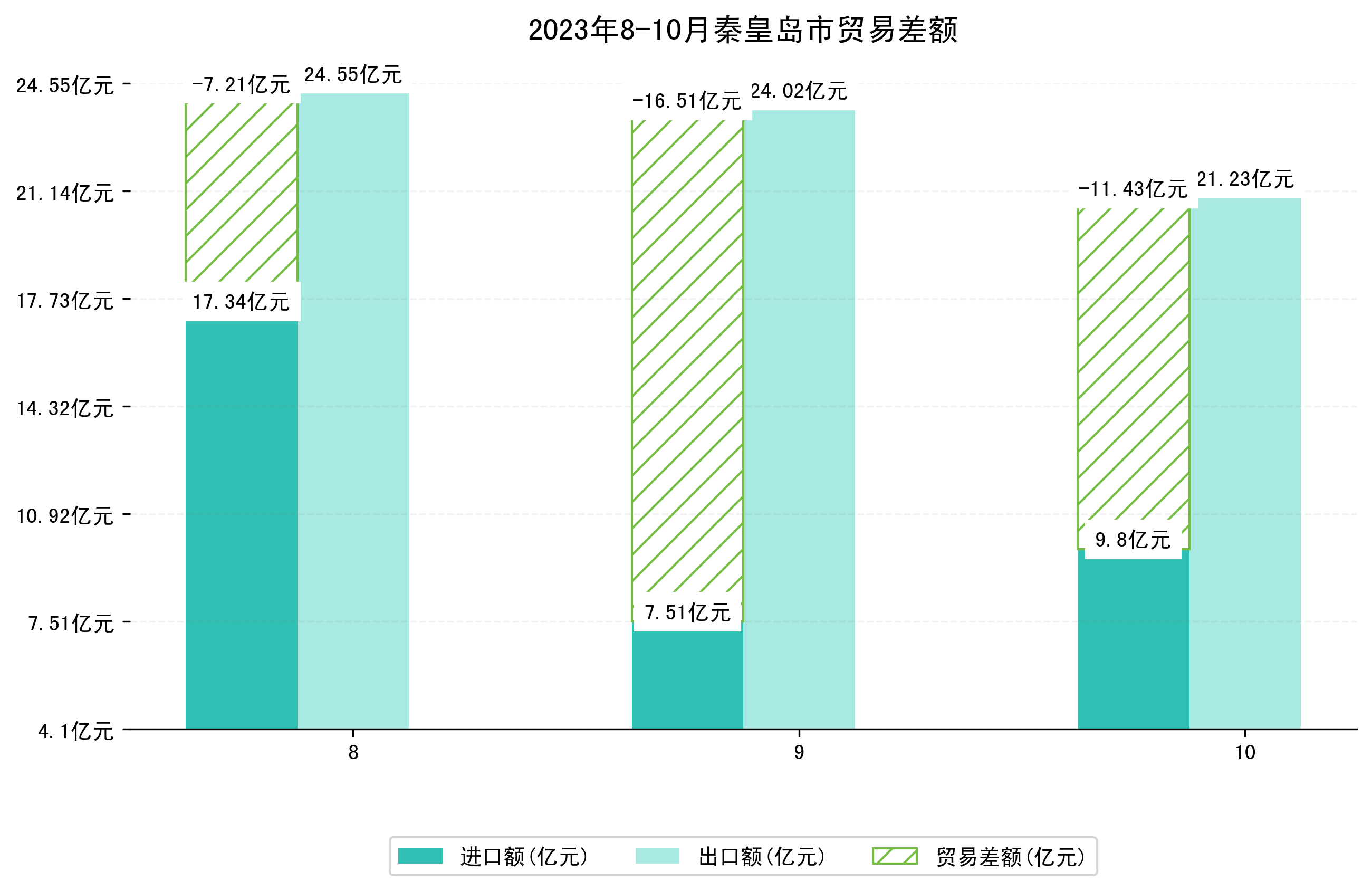 (图四:2023年8-10月秦皇岛市贸易差额)