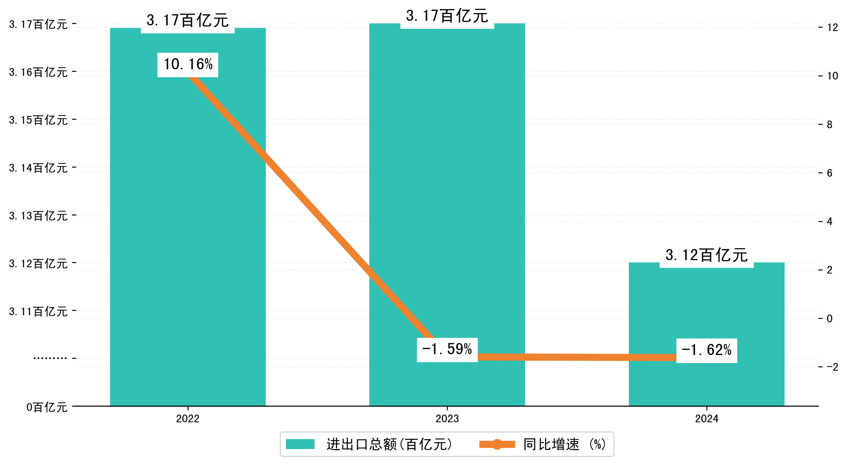 以人民币计,2024年1-9月秦皇岛市进出口总额为312,0819.3848万元,相比上年同期减少了5,1328.8121万元,同比减少了-1.60%。