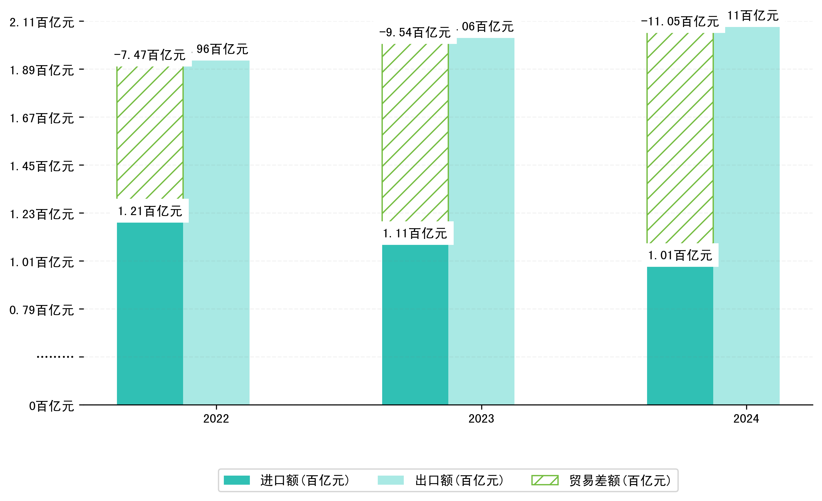 以人民币计,2024年9月秦皇岛市贸易差额为11,0558,3812万元(贸易顺差),相比上月减少了1,2943,1132万元,即1872,9122万美元;相比上年同期减少了5,4521,4313万元,同比减少-33.03%。