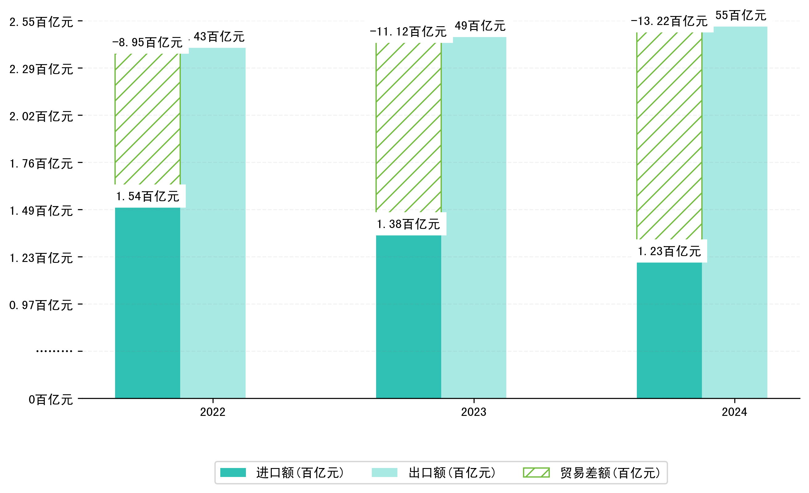 以人民币计,2024年1-11月秦皇岛市贸易差额为132,1896,1955万元(贸易顺差),相比上年同期增加了21,0321,3172万元,同比增加18.92%。