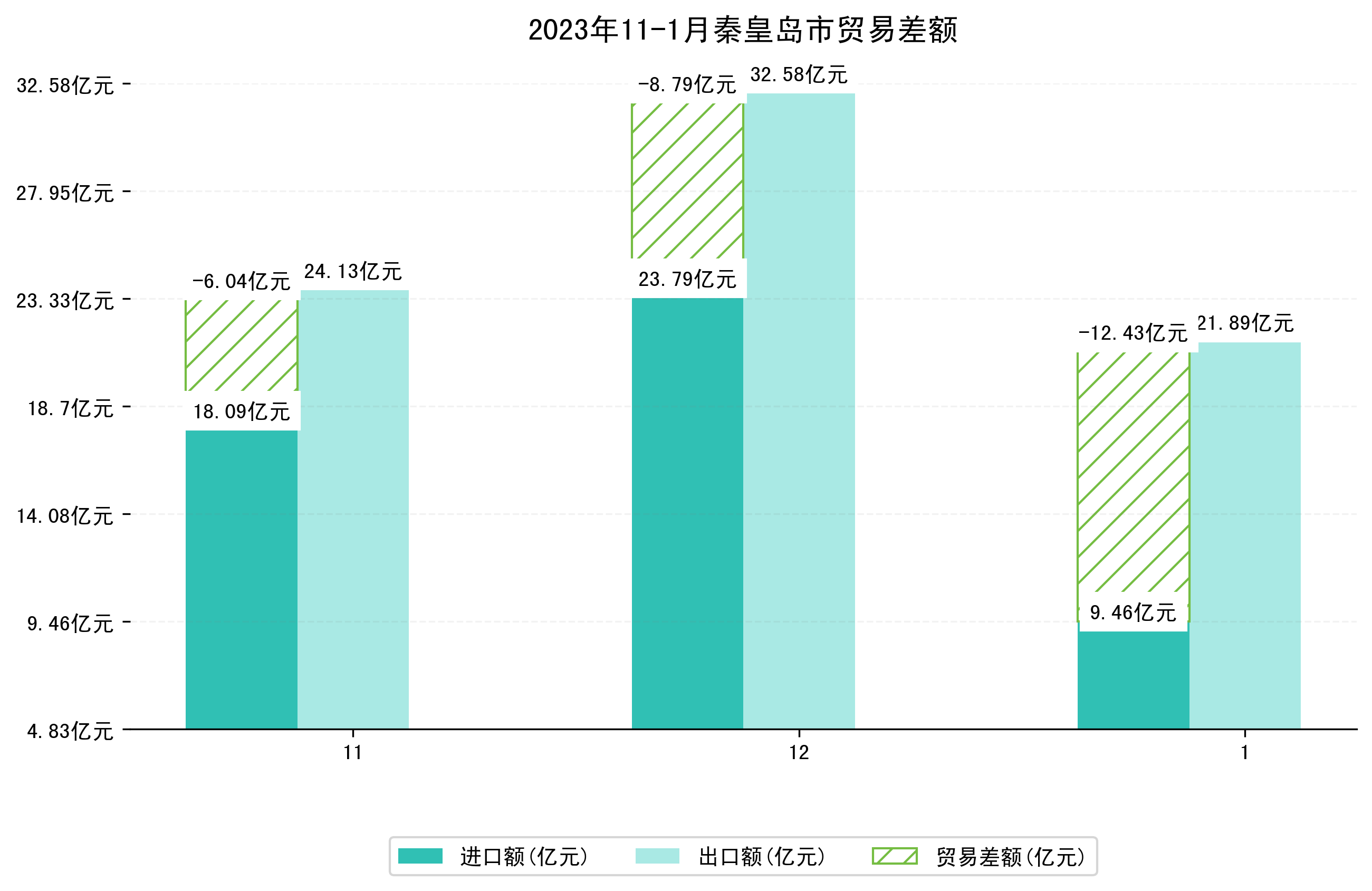 (图四:2023年11-1月秦皇岛市贸易差额)