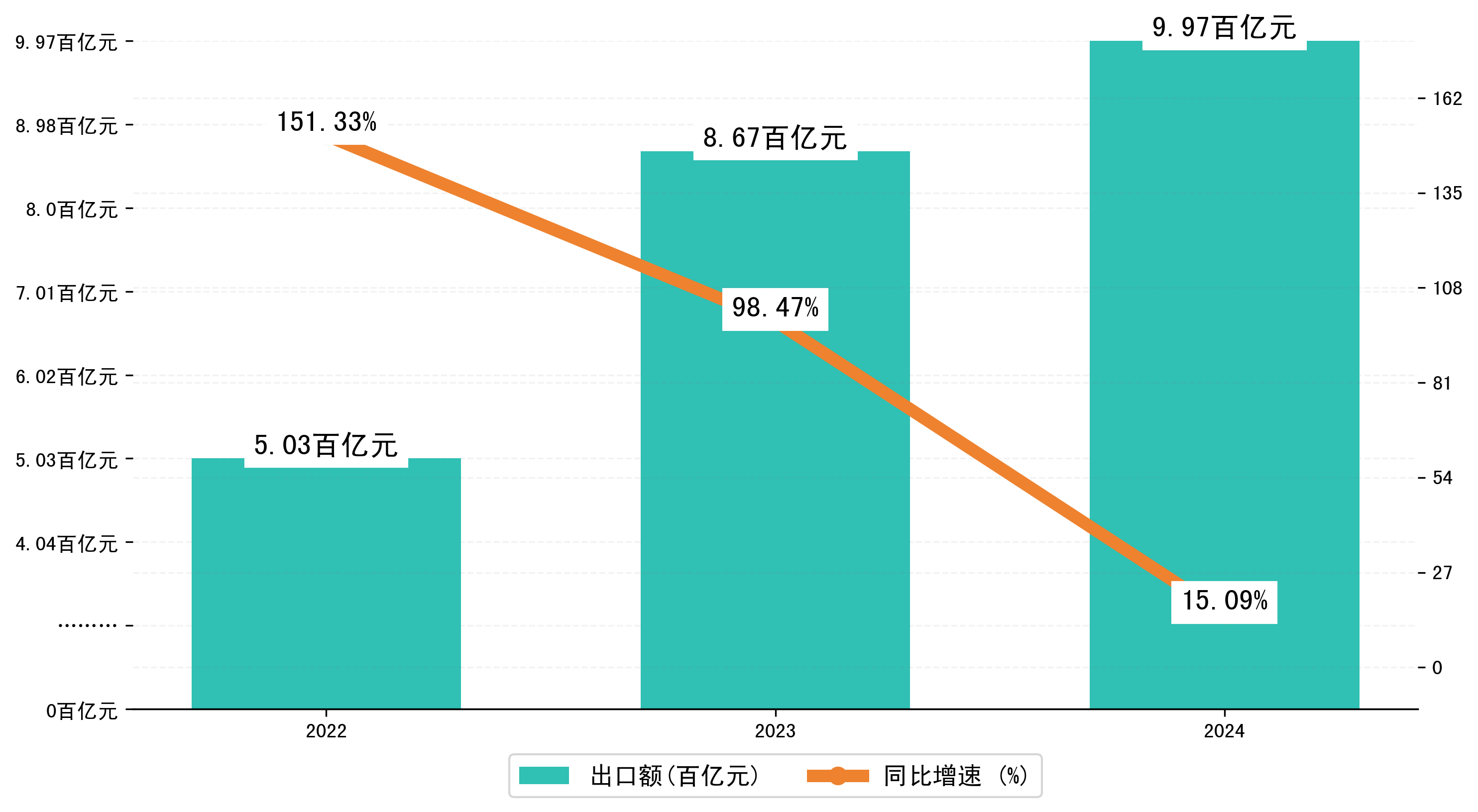 以人民币计,2024年1-10月芜湖市出口额为997,4801.3965万元,相比上年同期增加了130,7799.2508万元,同比增加了16.30%。