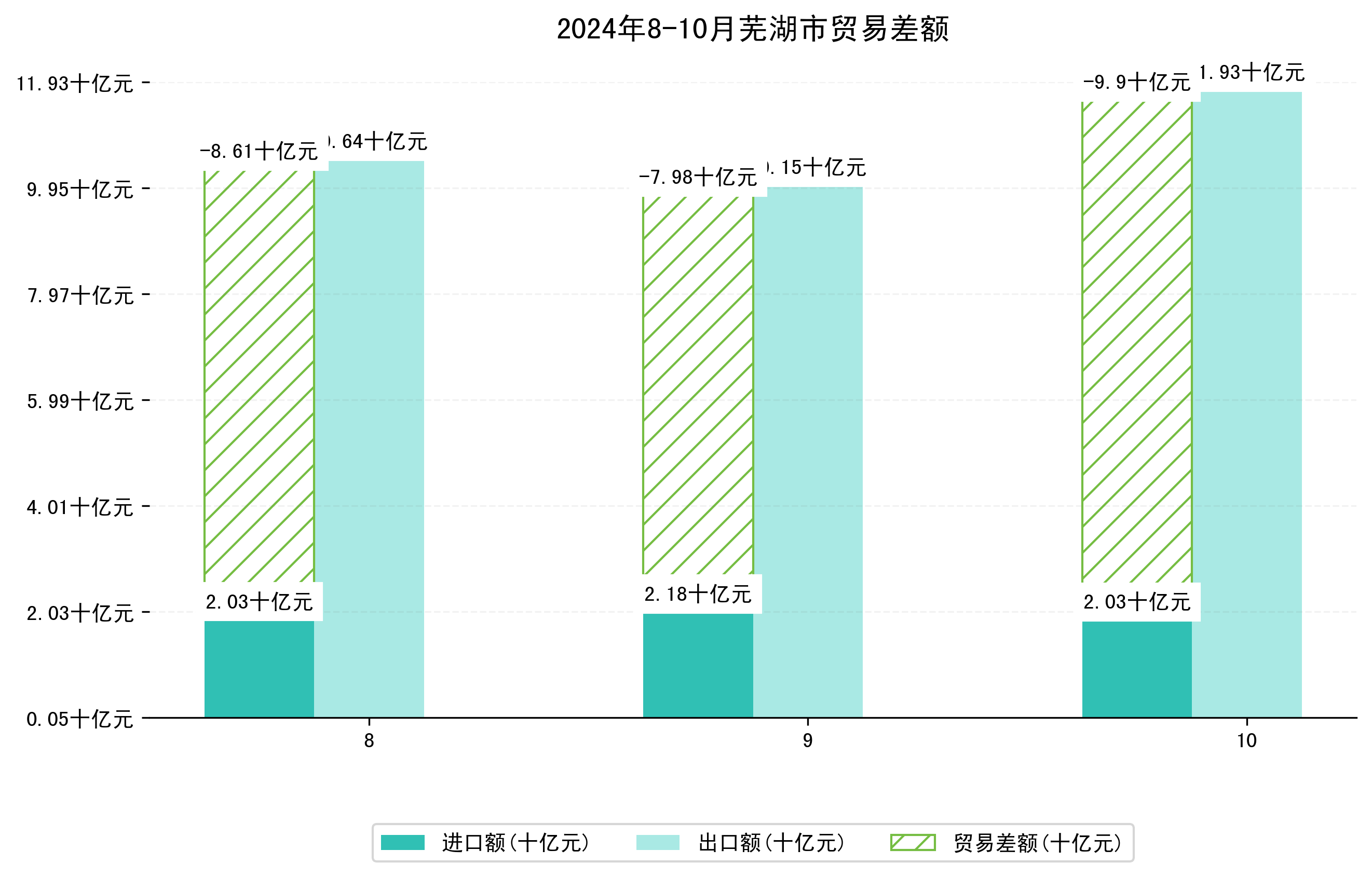 (图四:2024年8-10月芜湖市贸易差额)