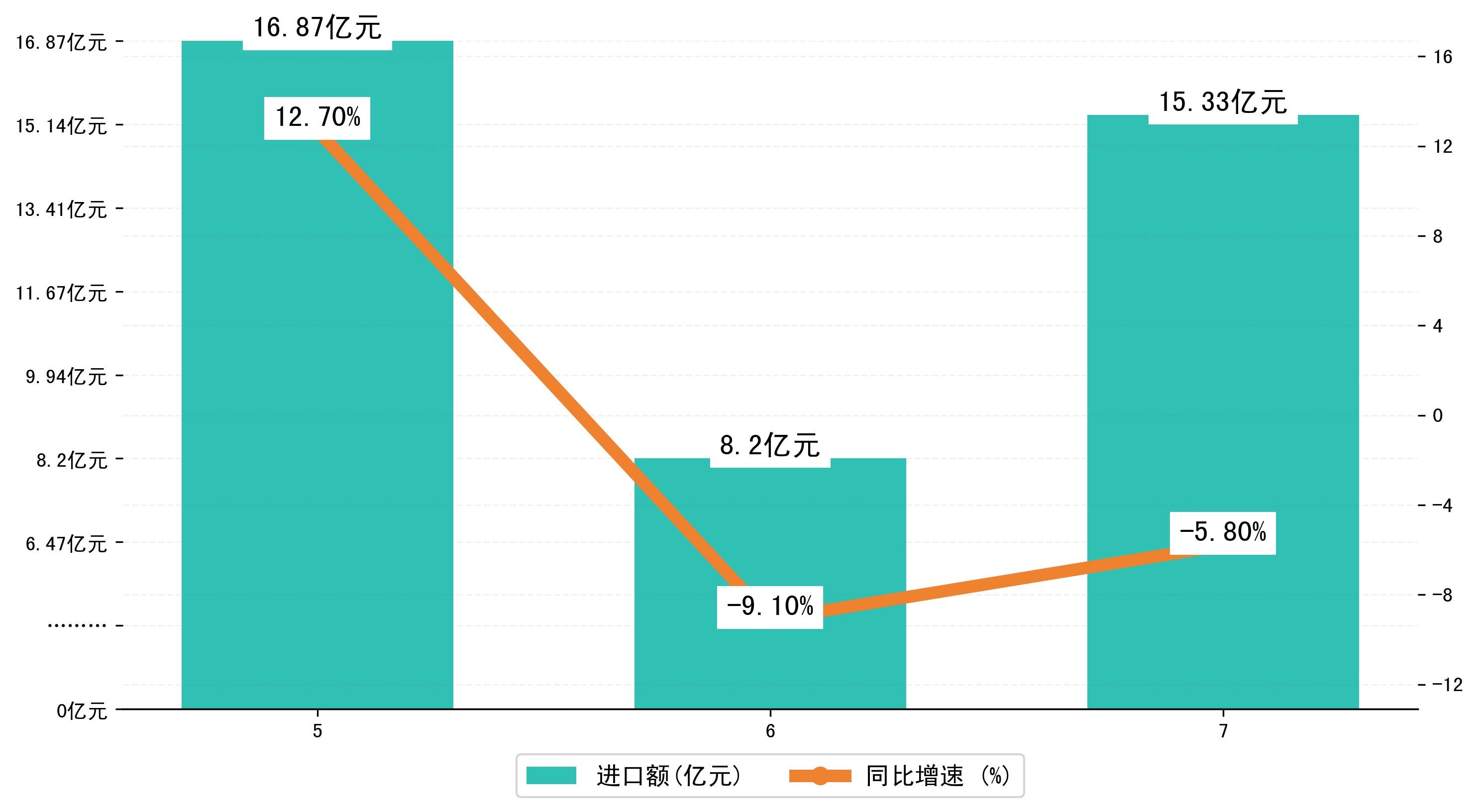 以人民币计,2023年7月秦皇岛市进口额为15,3266.5994万元,相比上月增加了7,1250.0489万元;相比上年同期增加了1,6549.3745万元,同比减少了-5.80%。