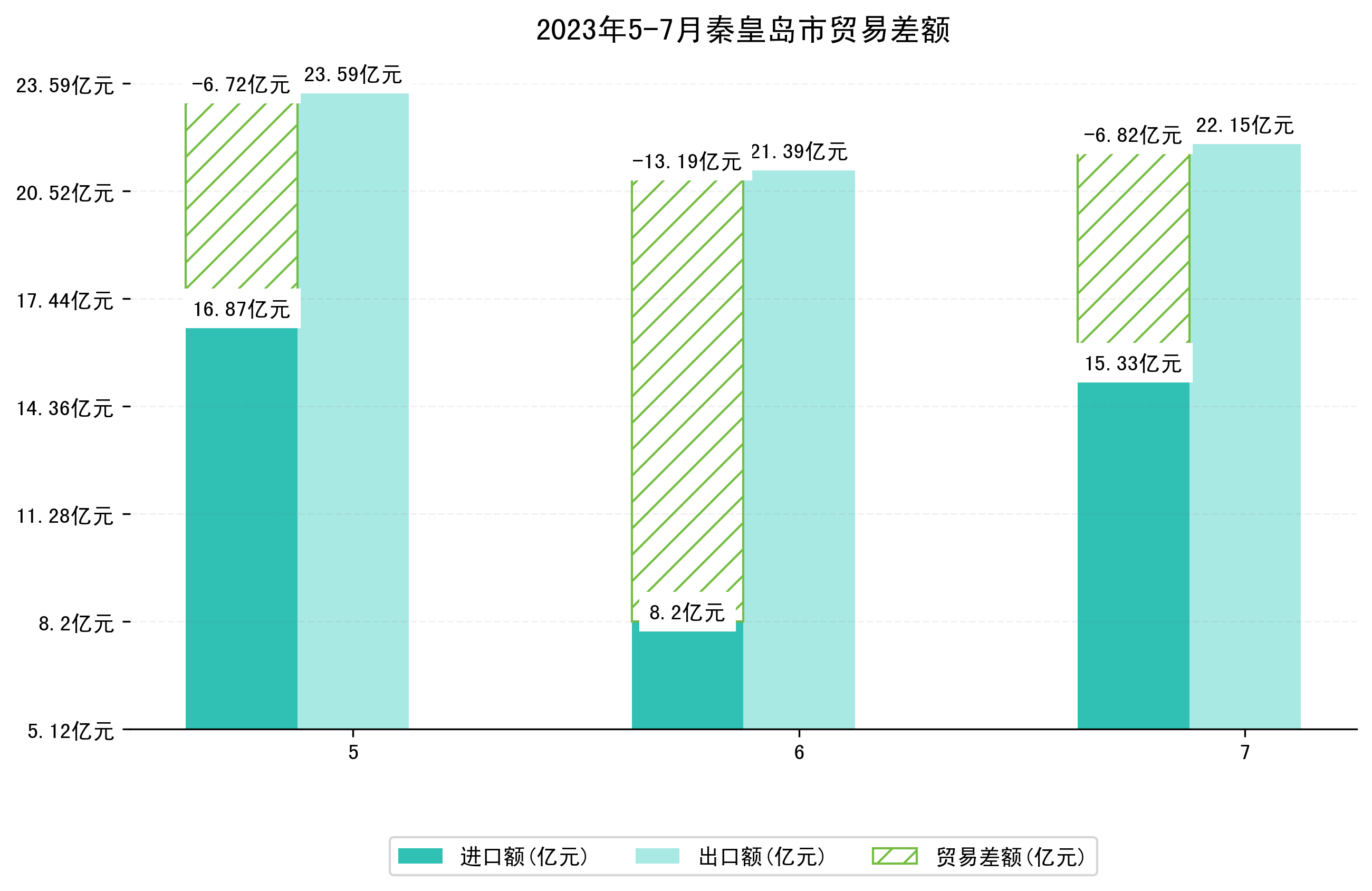 (图一:2023年5-7月秦皇岛市进出口总额)