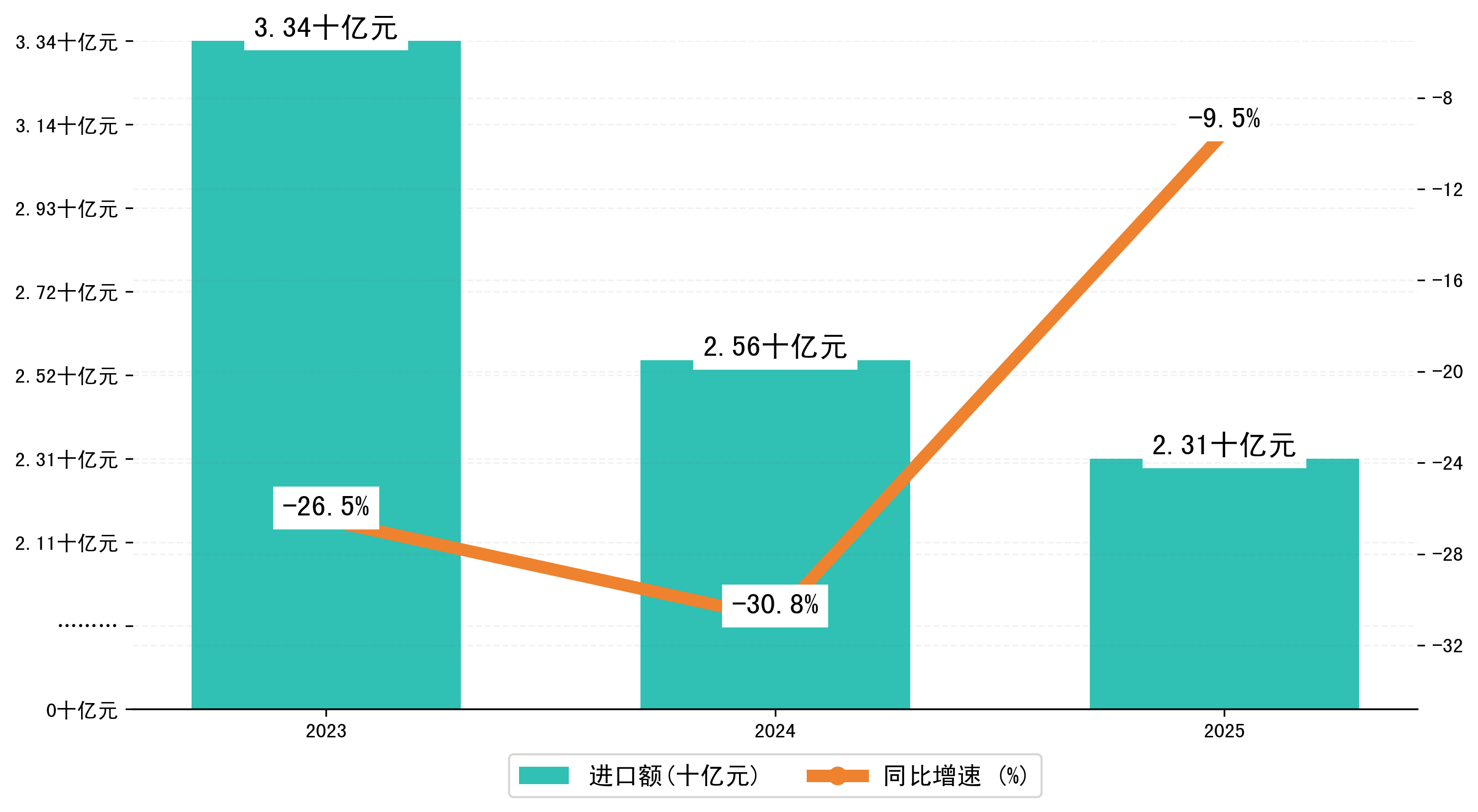 以美元计,2025年1-3月秦皇岛市进口额为3,2205.6475万美元,相比上年同期减少了3753.051万美元,同比减少-9.70%。