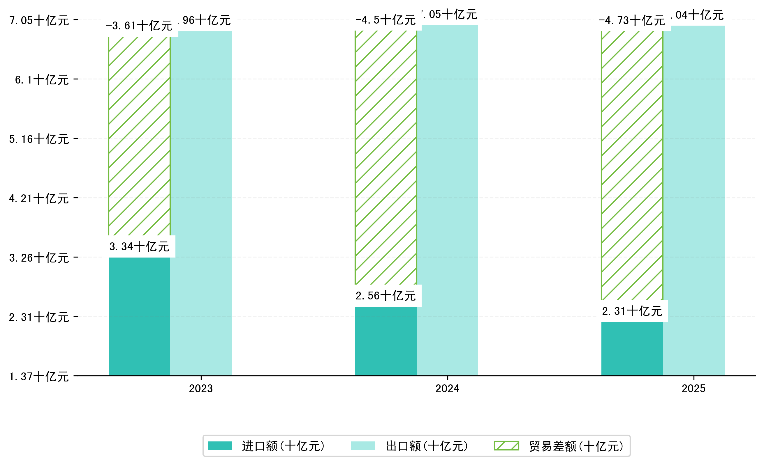 以人民币计,2025年1-3月秦皇岛市贸易差额为47,3078,3818万元(贸易顺差),相比上年同期增加了2,3441,3951万元,同比增加5.21%。