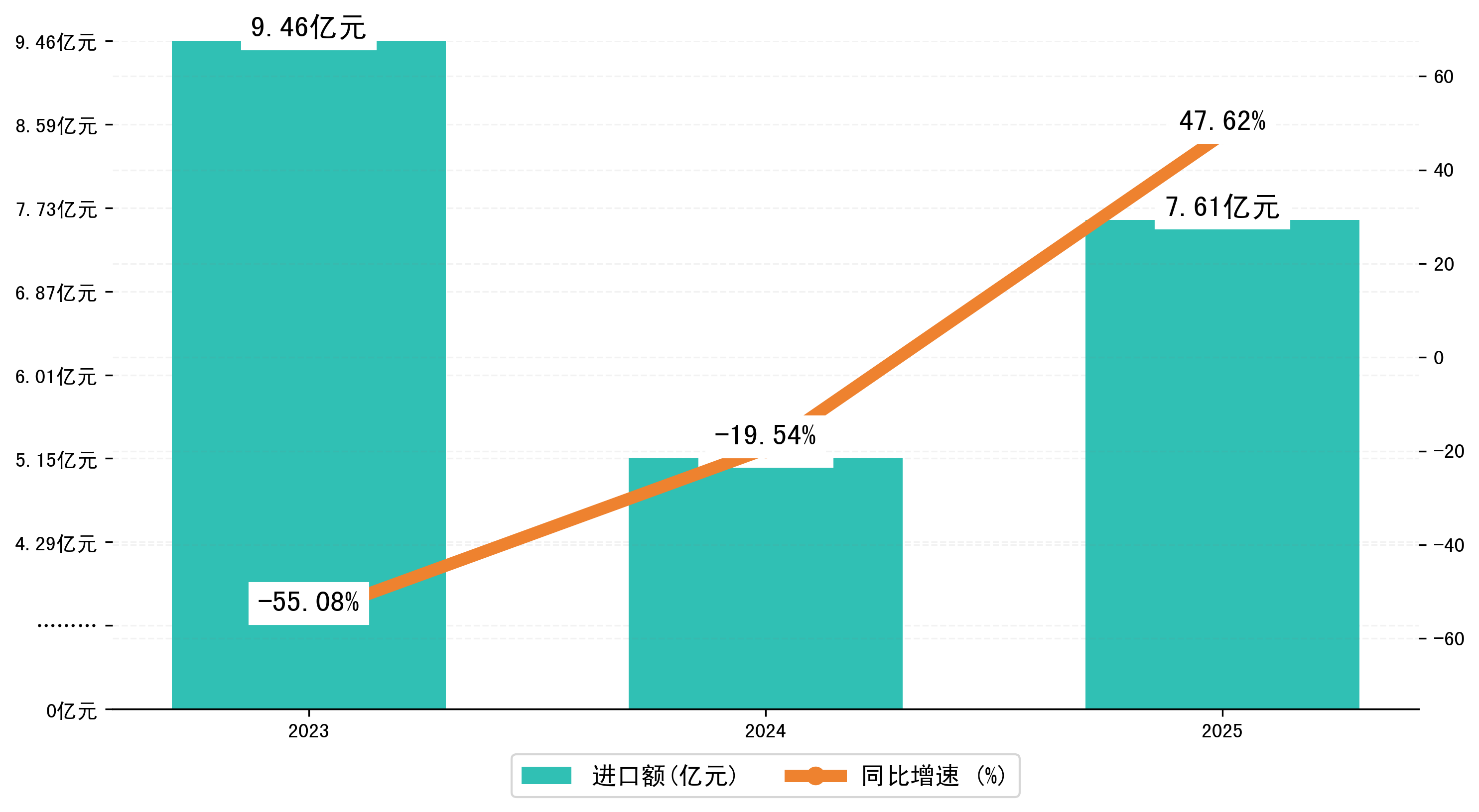 (图七:2023-2025年1-1月秦皇岛市累计进口额)