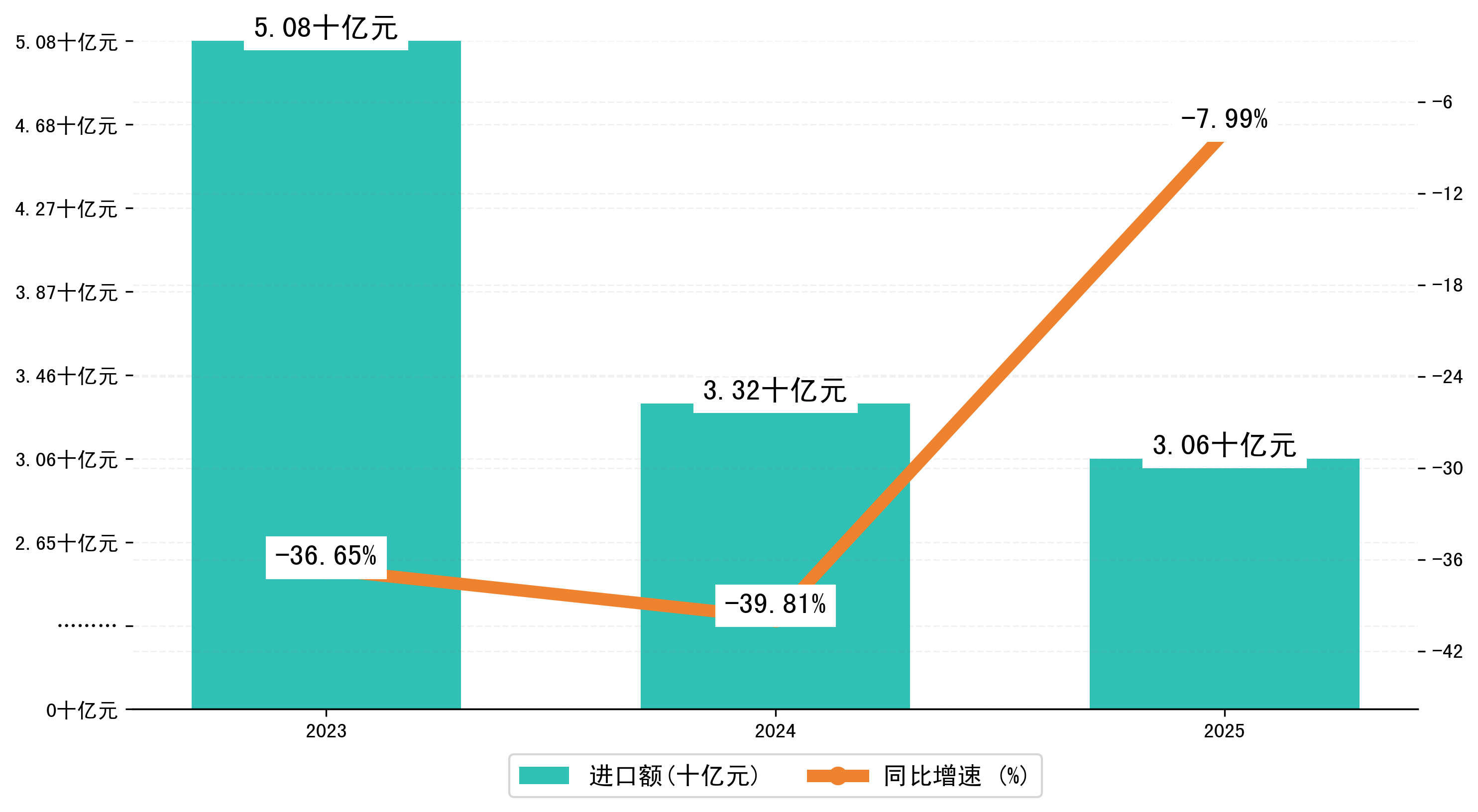 以人民币计,2025年1-4月秦皇岛市进口额为30,5912.9642万元,相比上年同期减少了2,6567.6092万元,同比减少了-6.70%。