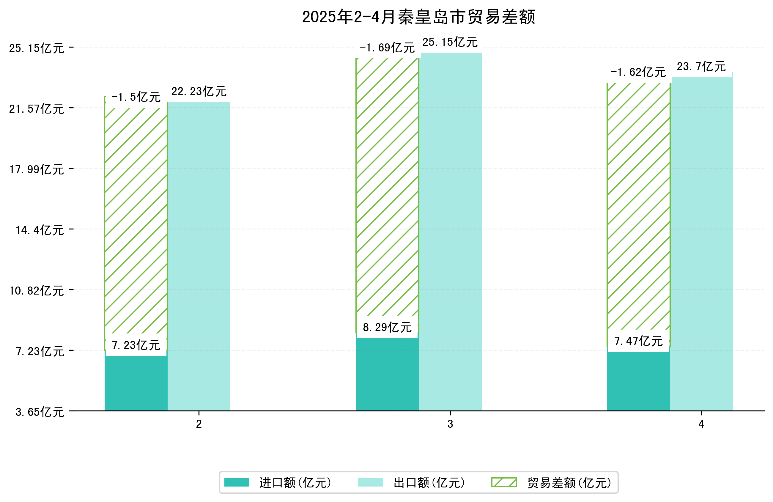 2025年4月秦皇岛市进出口总额及进出口差额统计分析