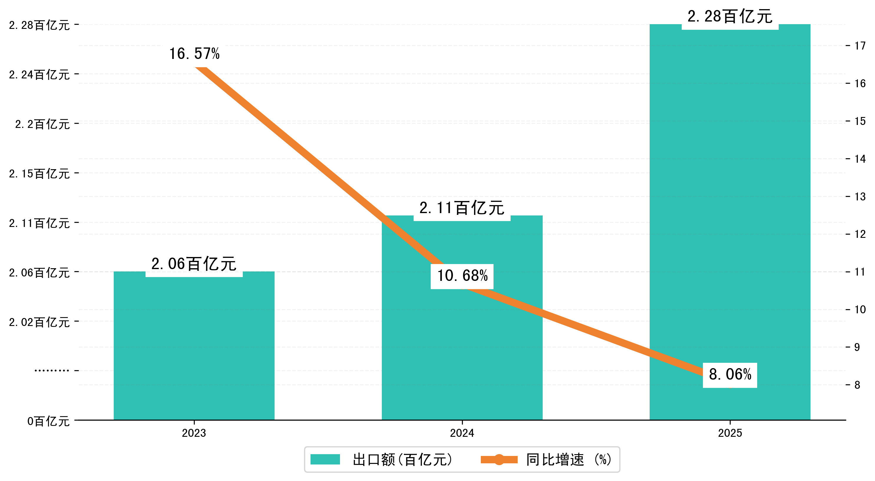 以美元计,2025年1-9月秦皇岛市出口额为31,8286.2107万美元,相比上年同期增加了2,1127.7267万美元,同比增加7.40%。