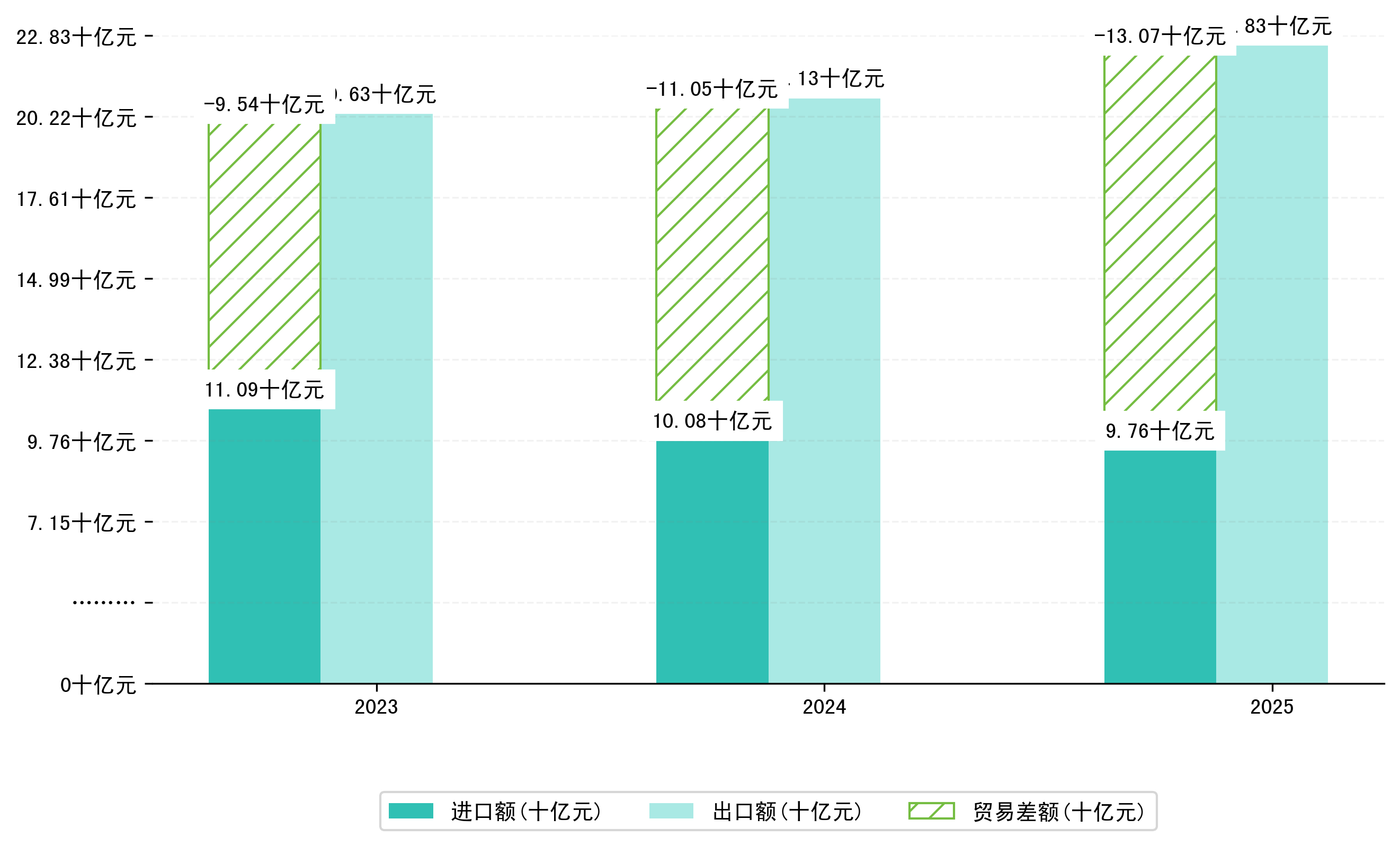 以人民币计,2025年1-9月秦皇岛市贸易差额为130,7154,3081万元(贸易顺差),相比上年同期增加了20,1758,1752万元,同比增加18.25%。